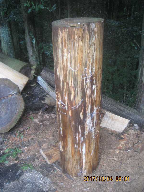 素材(主に杉丸太)から必要部分を残し不要部分をカットして