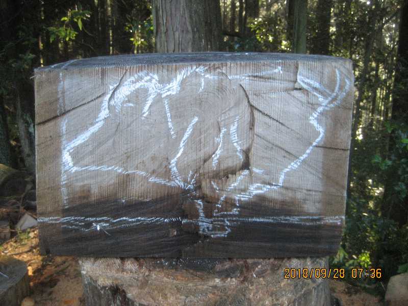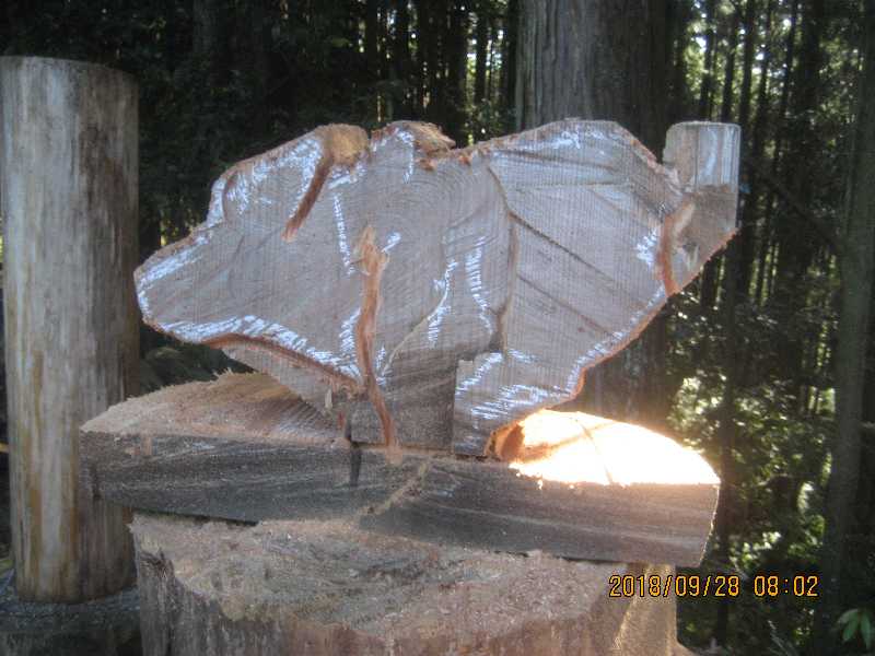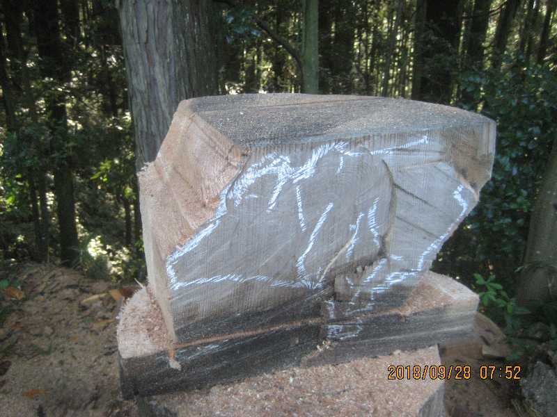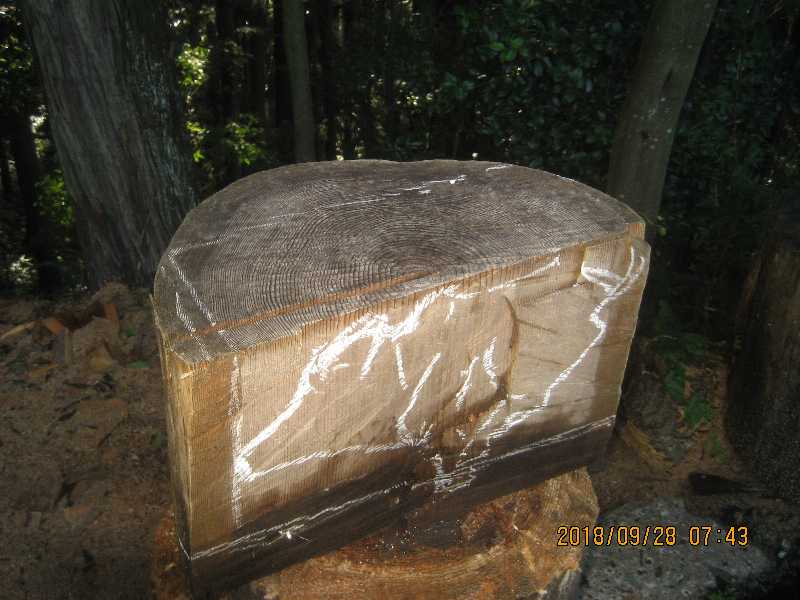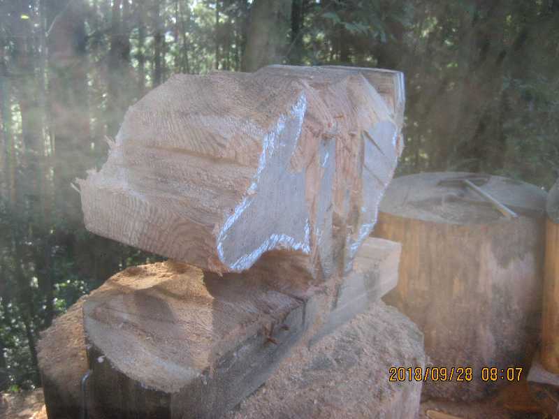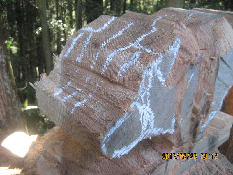 素材(主に杉丸太)から必要部分を残し不要部分をカットして
