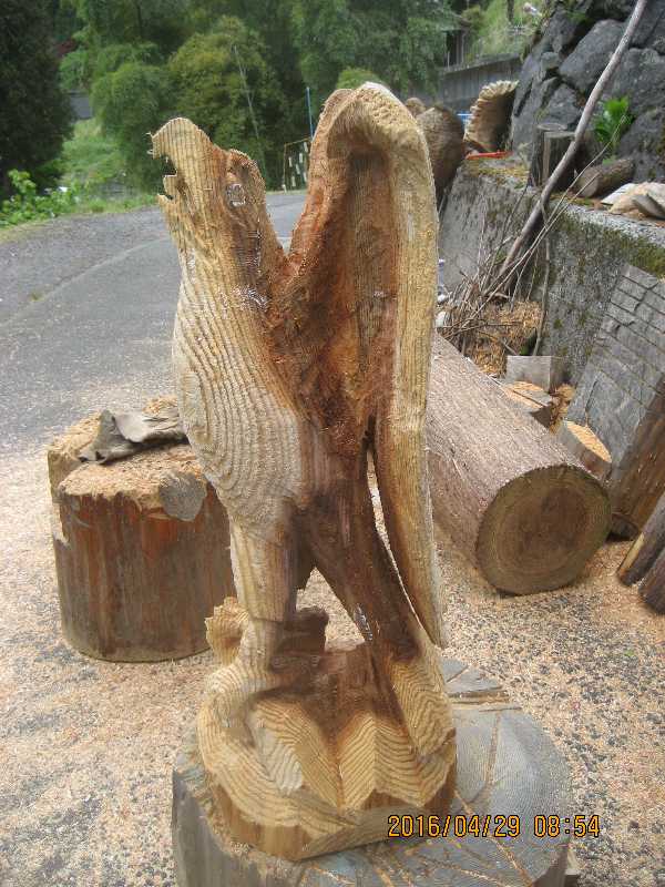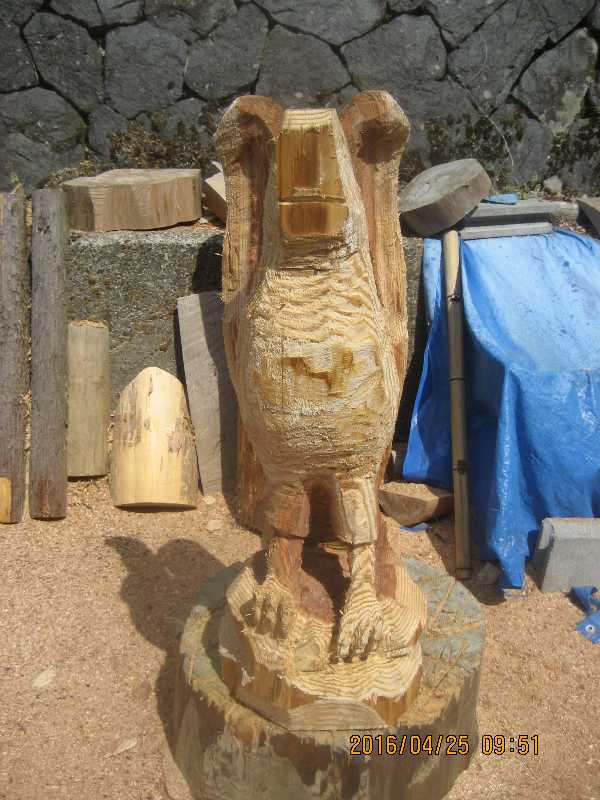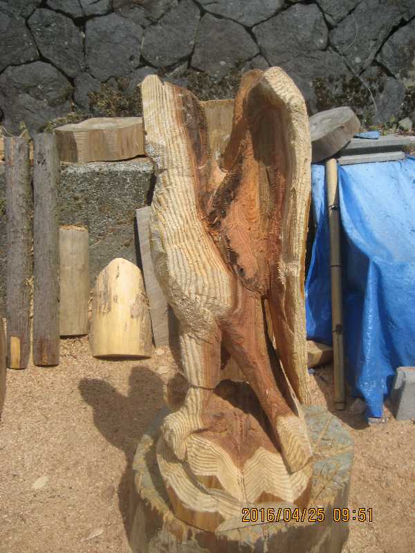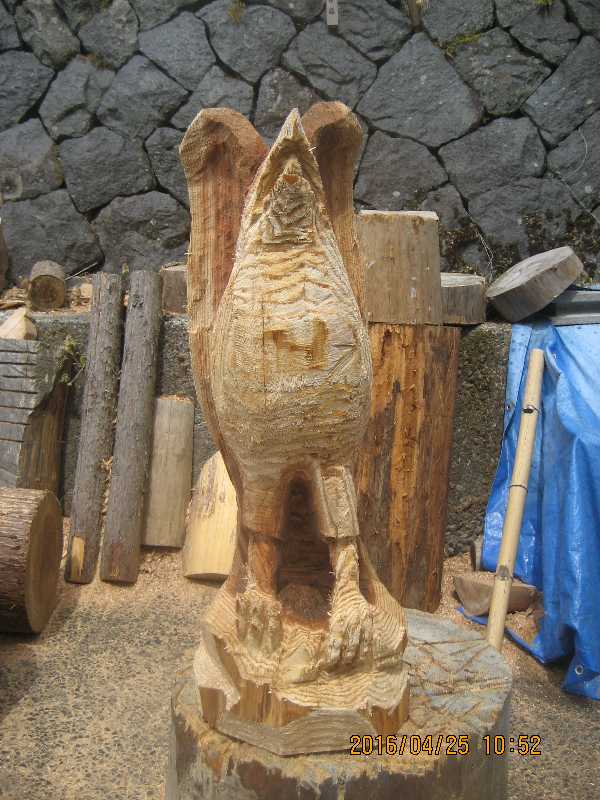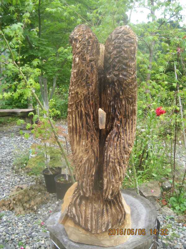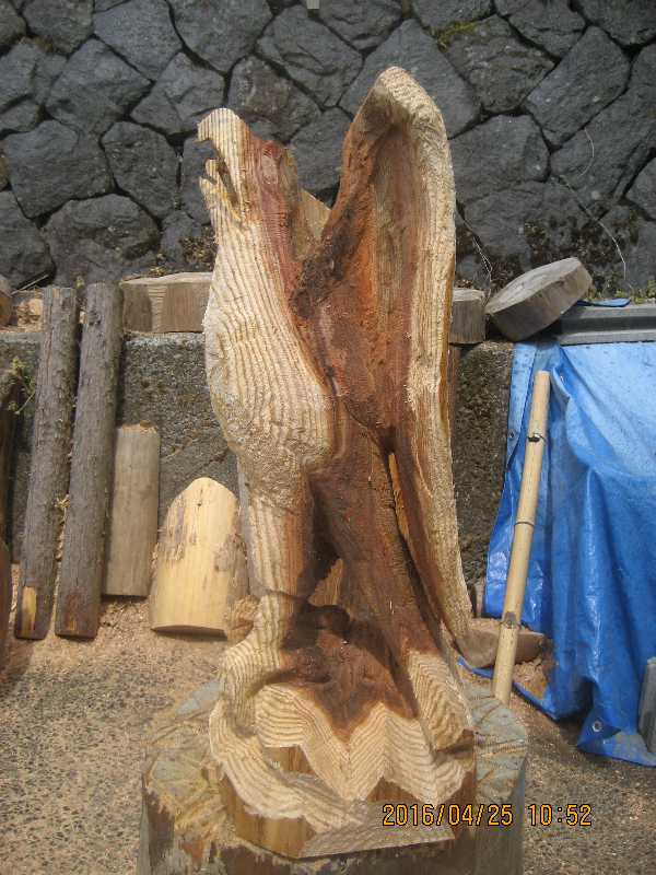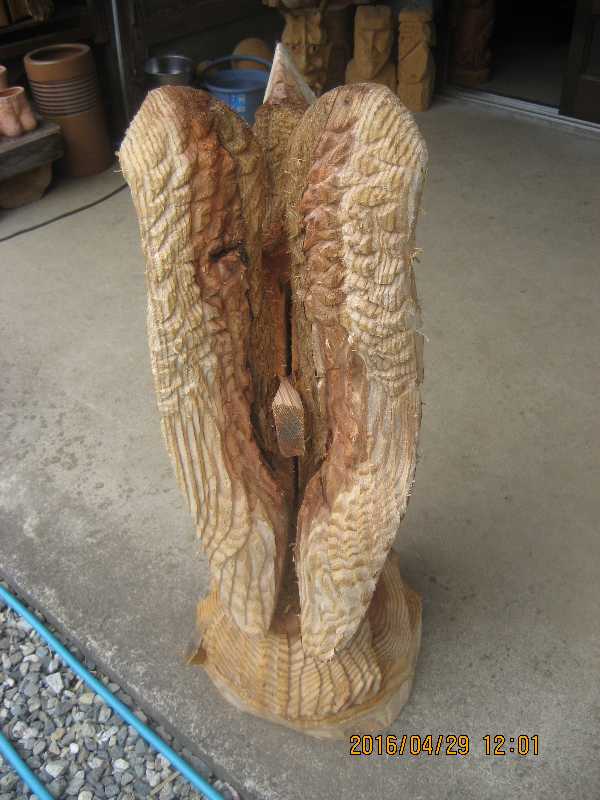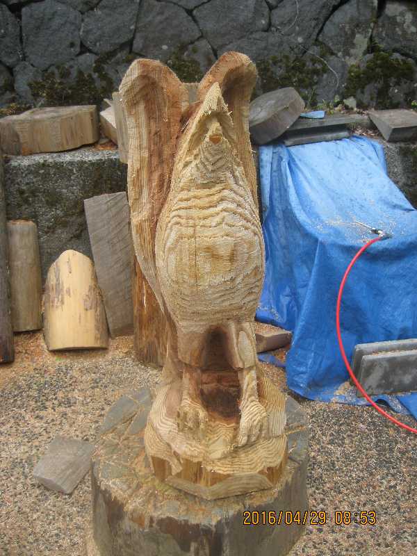 目入れ、、全体修正して羽模様創りが仕上げ彫り完成したい