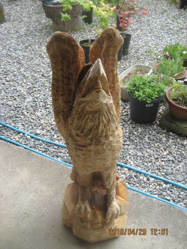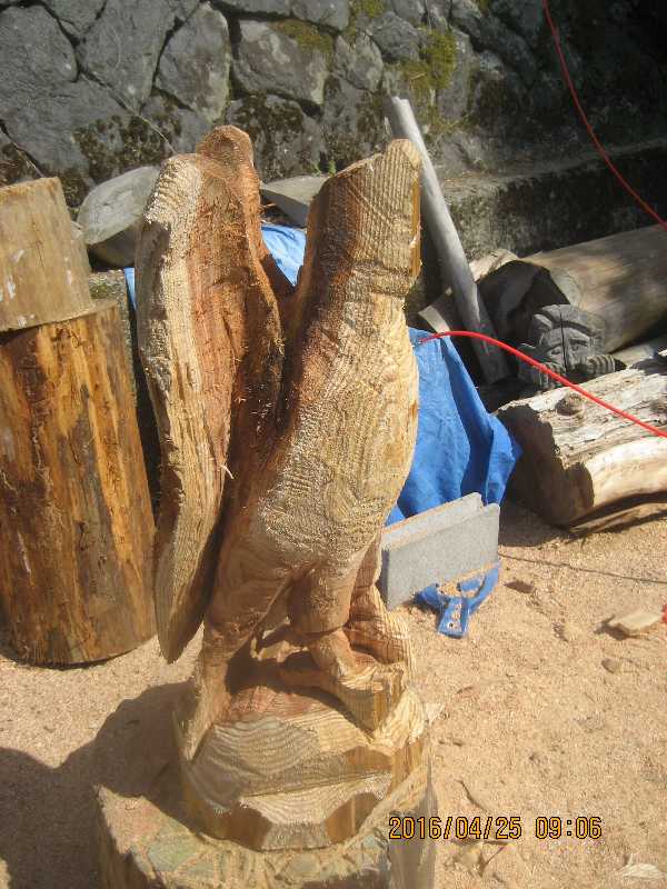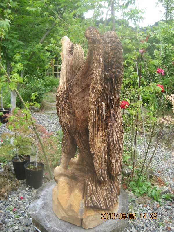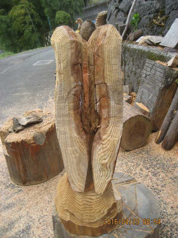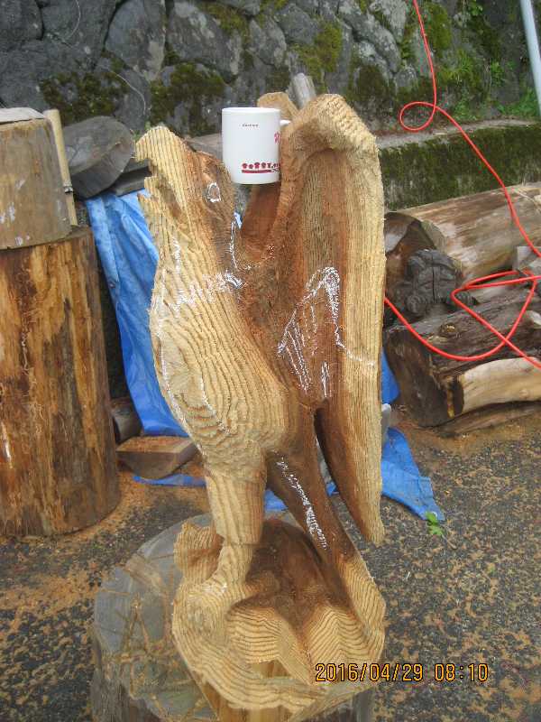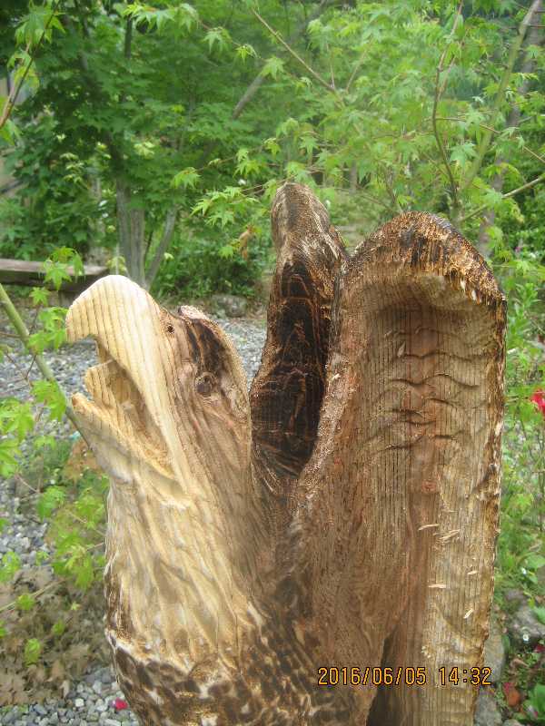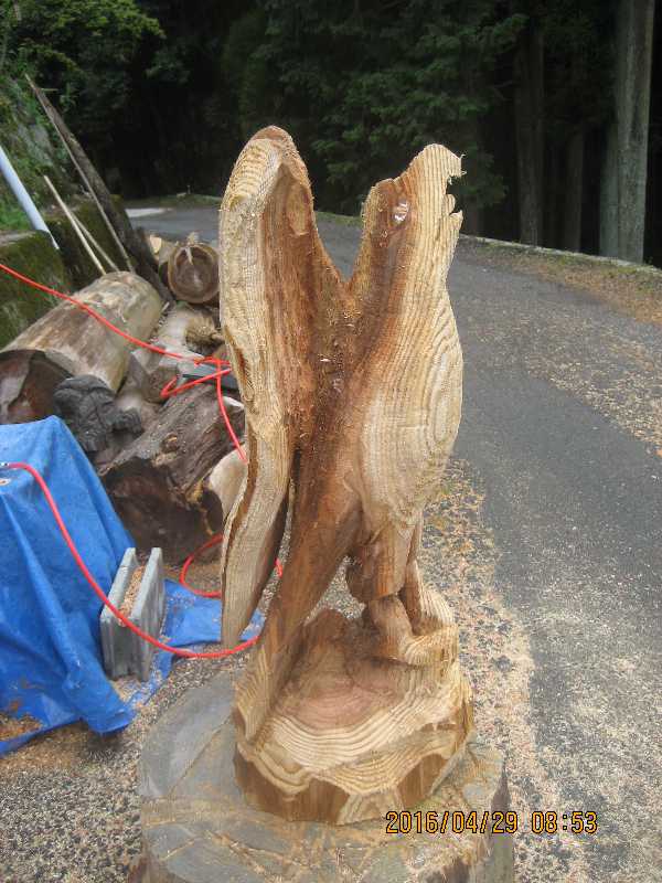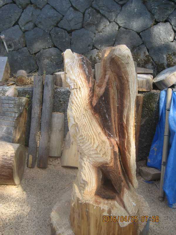 目入れ、、全体修正して羽模様創りが仕上げ彫り完成したい