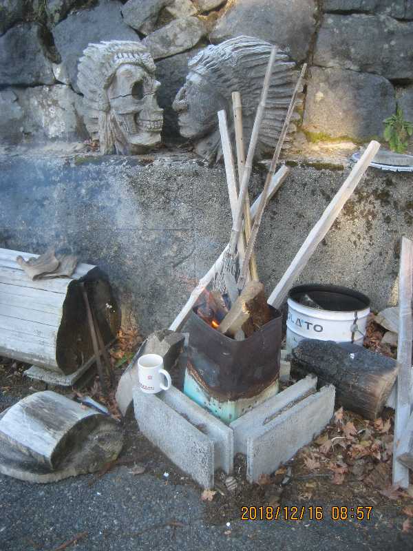 8:21 さぶぅ〜 焚き火で コーヒ