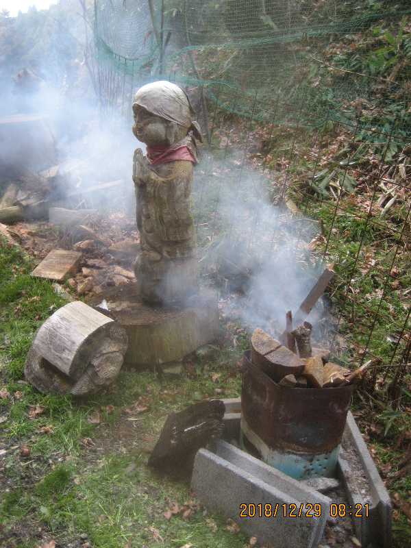 焚き火から離れられませ〜ん