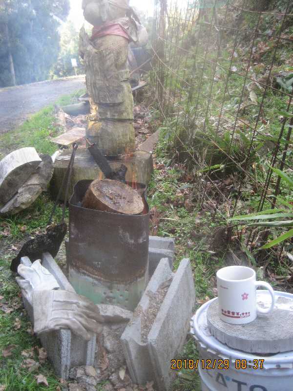 8:22 さぶぅ〜 焚き火で コーヒ