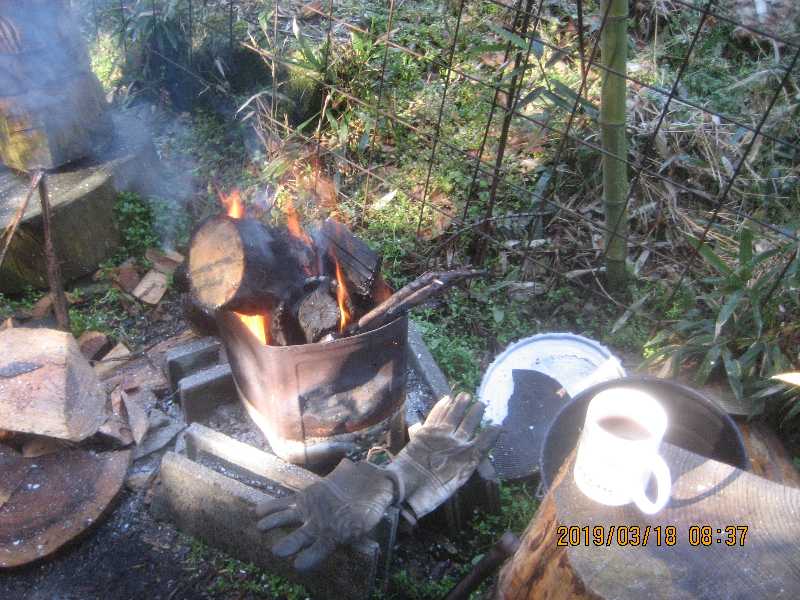 8:37 まずは火おこし&コーヒ