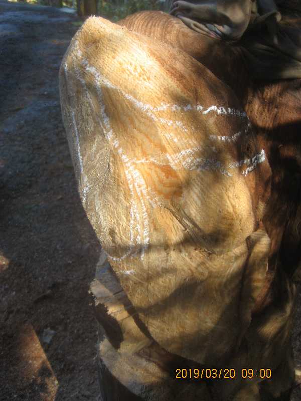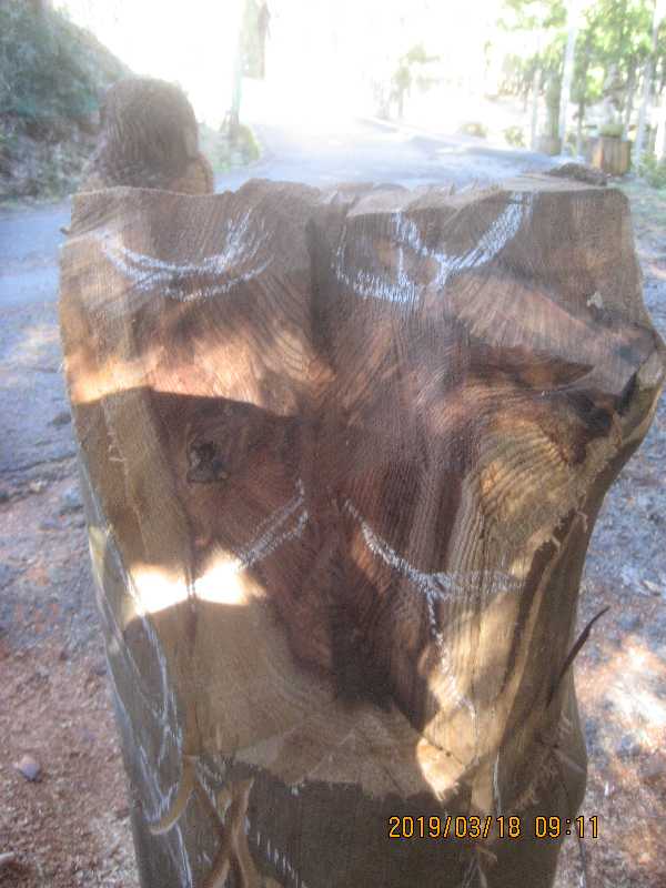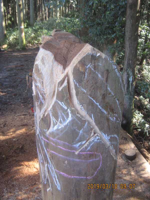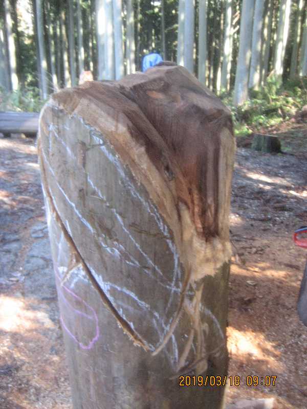 素材(主に杉丸太)から必要部分を残し不要部分をカットして