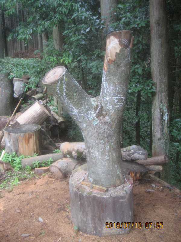 素材(主に杉丸太)から必要部分を残し不要部分をカットして