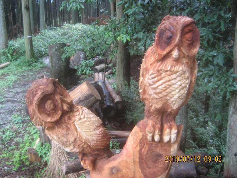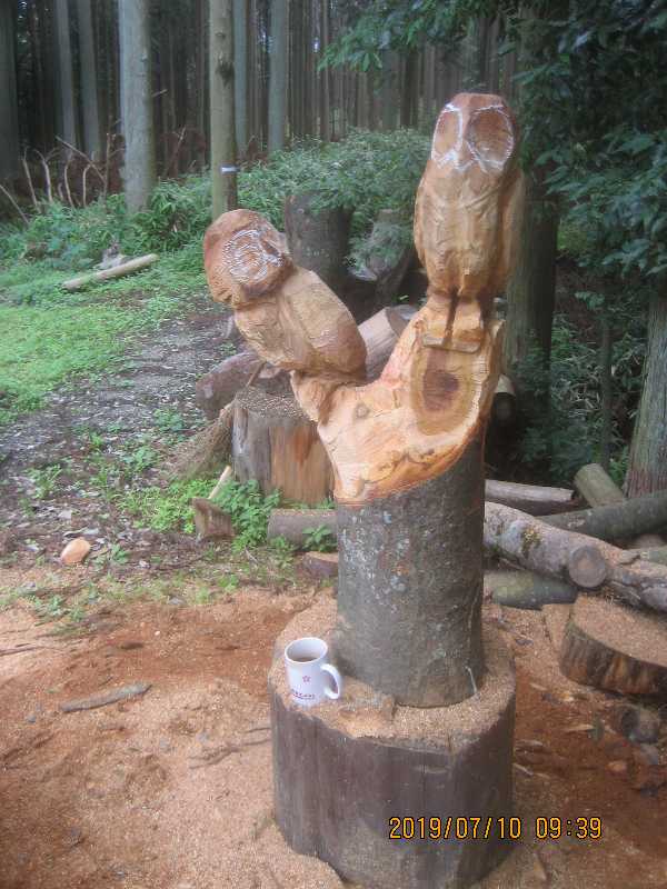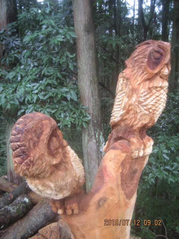 Y字の部分にフクロウ二羽