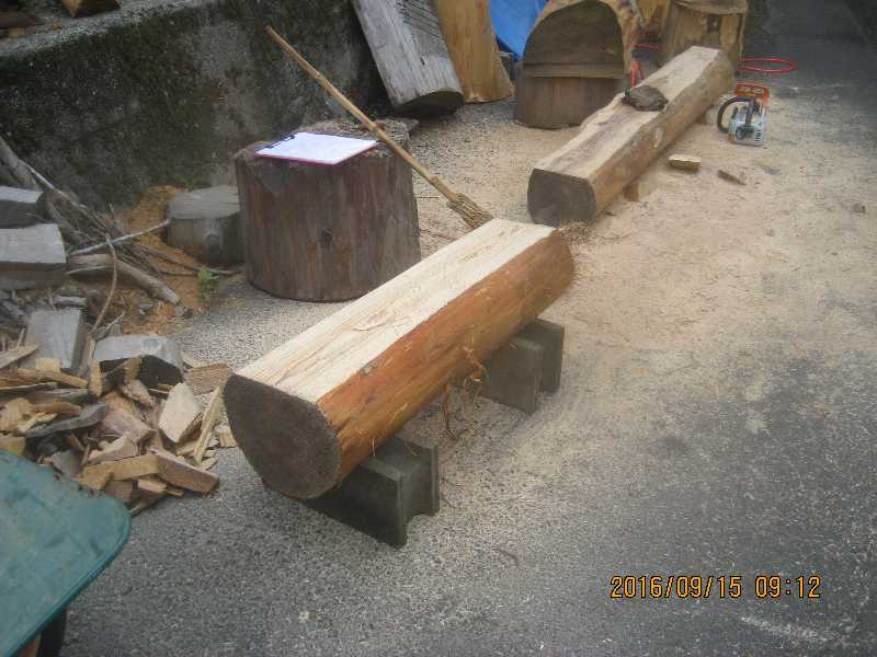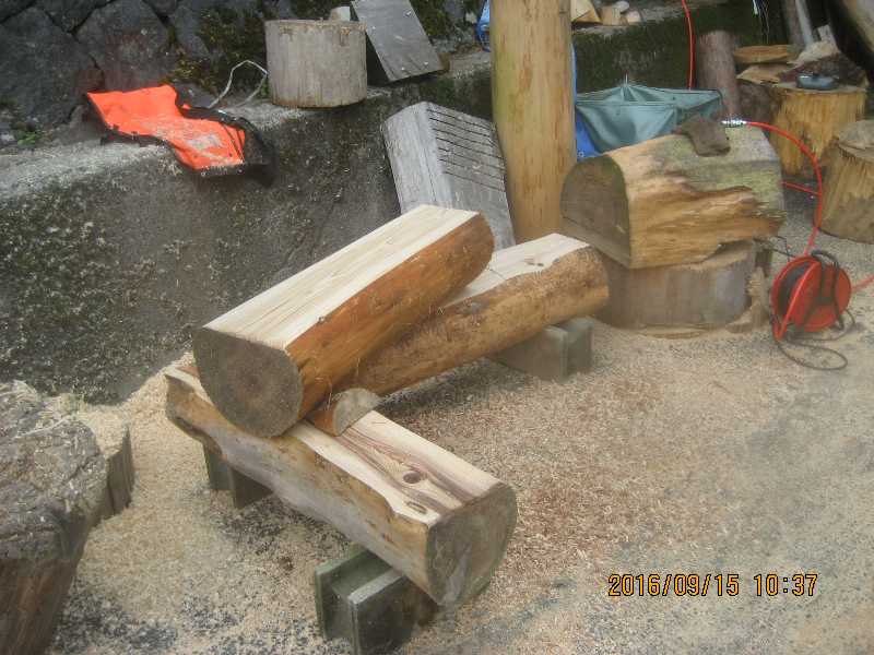 221 作品置台付き 丸太ベンチ