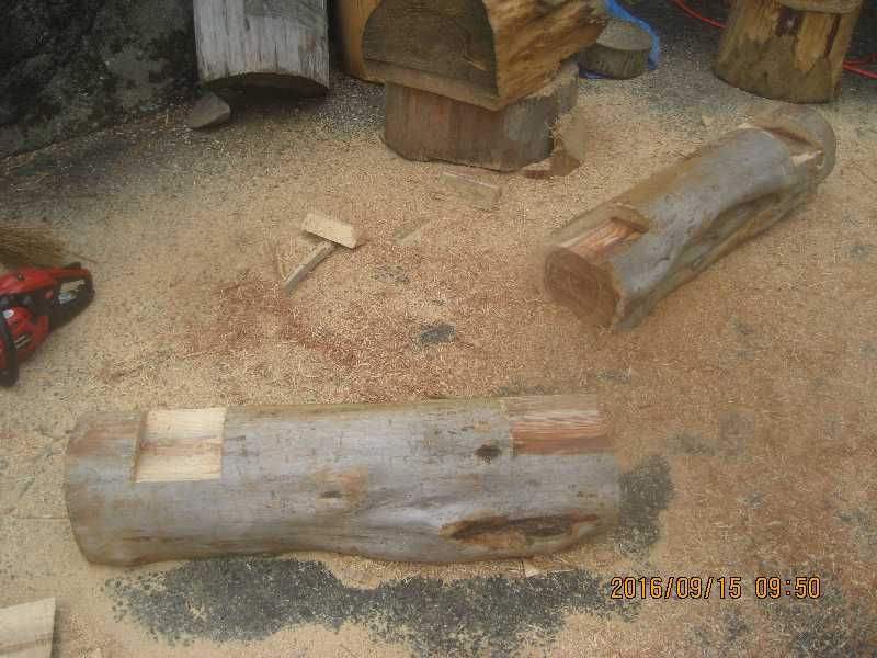 素材(主に杉丸太)から必要部分を残し不要部分をカットして