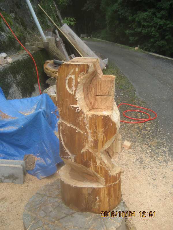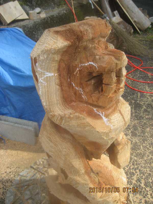 10:11 全体磨き、背割り、口回りはチェンソーではここまで