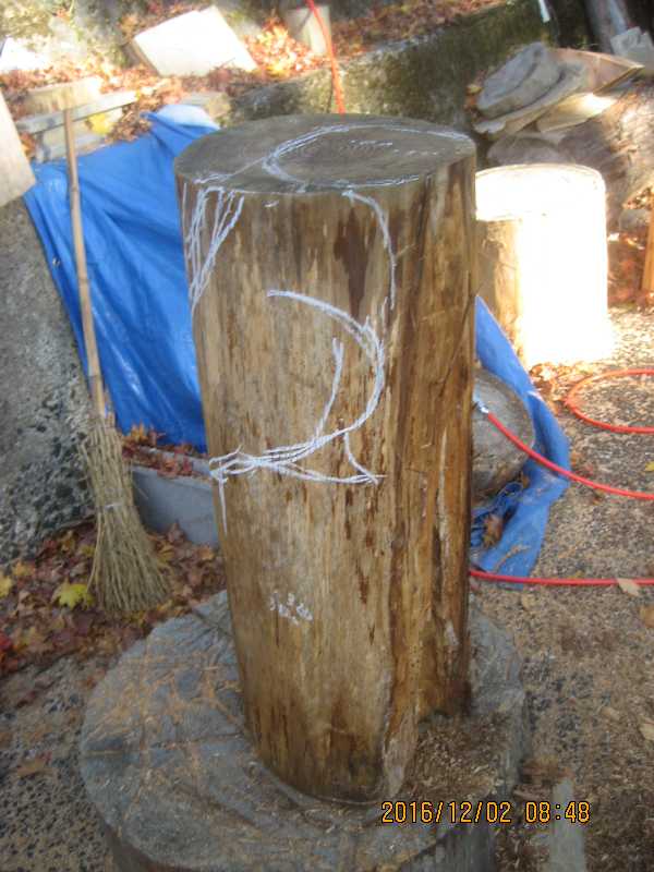 素材(主に杉丸太)から必要部分を残し不要部分をカットして