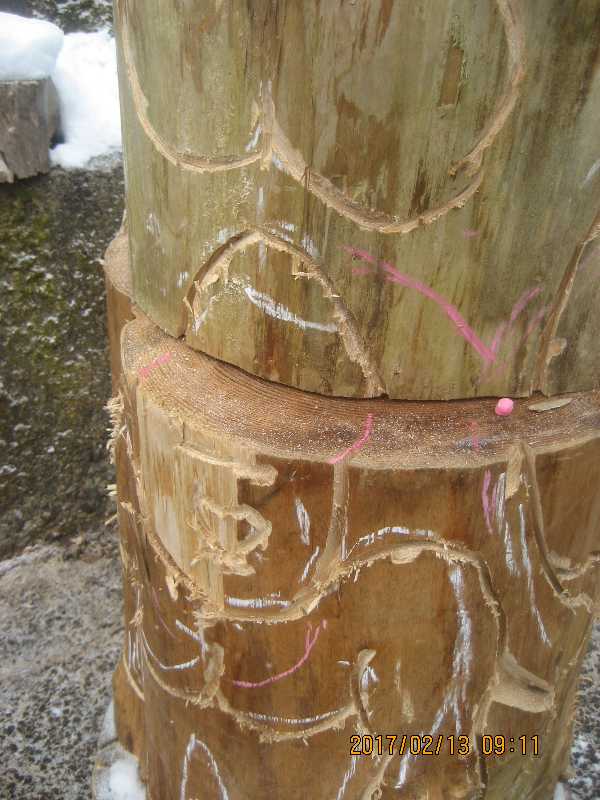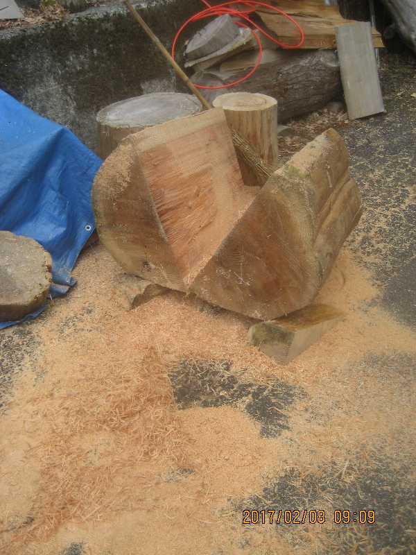 素材(主に杉丸太)から必要部分を残し不要部分をカットして
