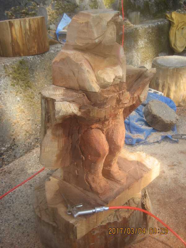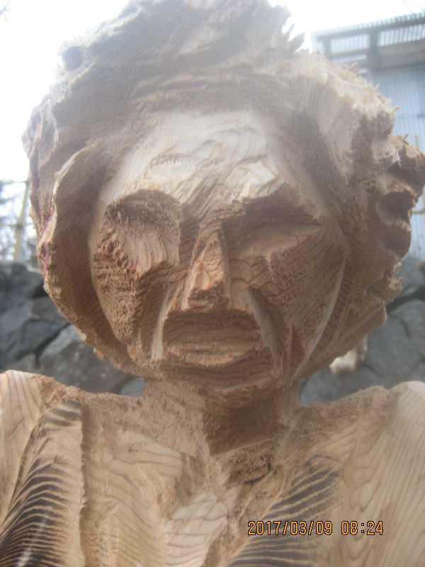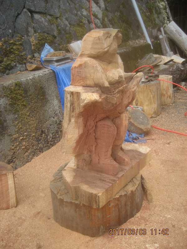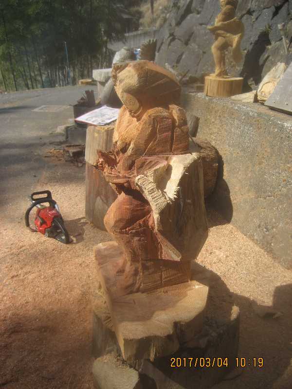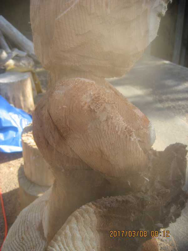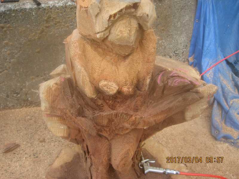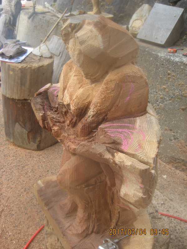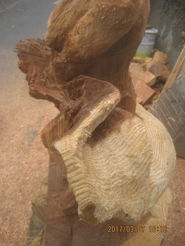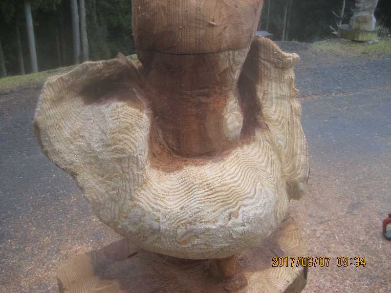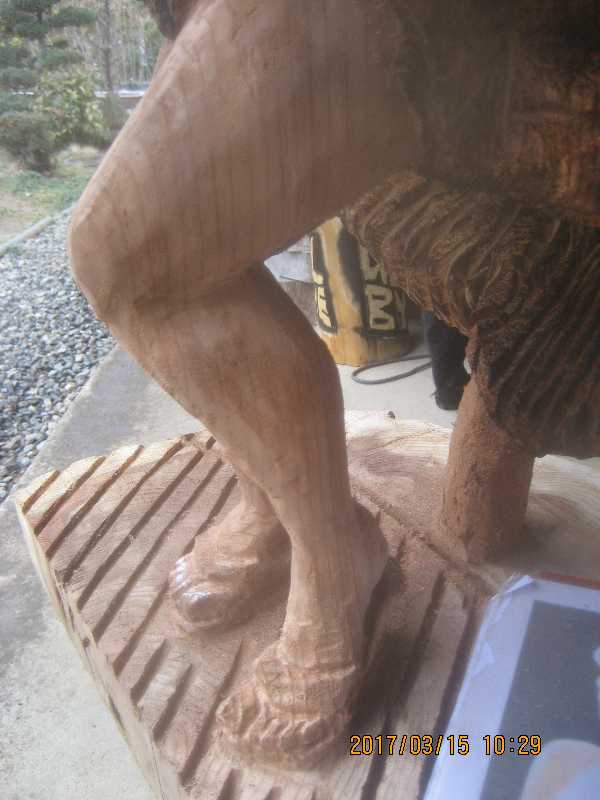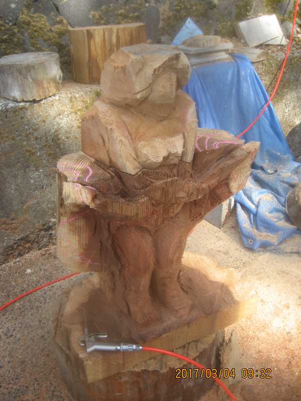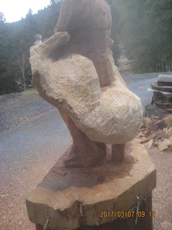 チェンソー、ノミ仕上げ