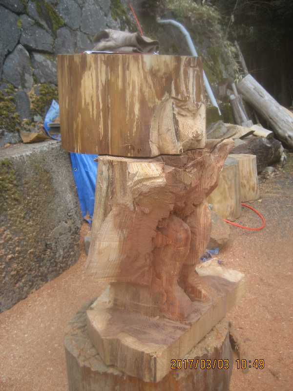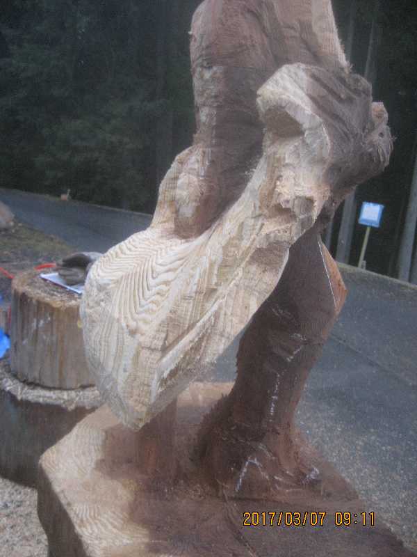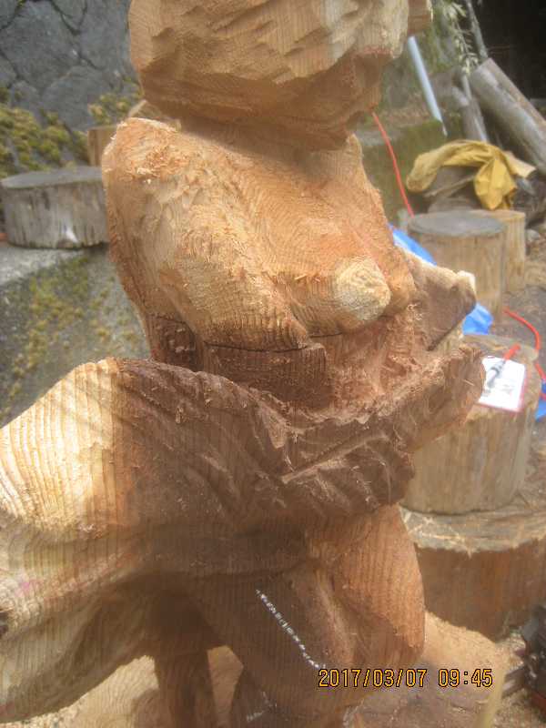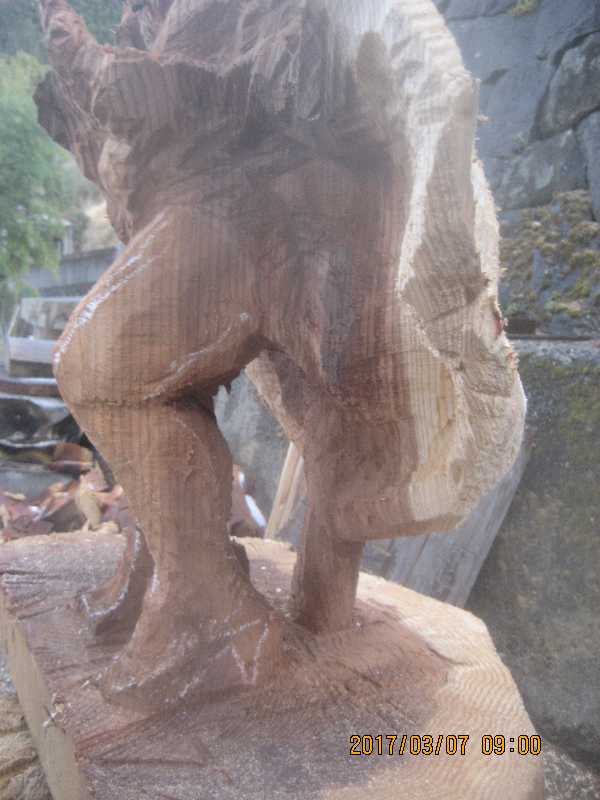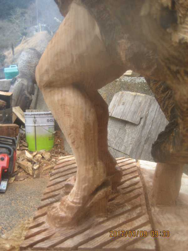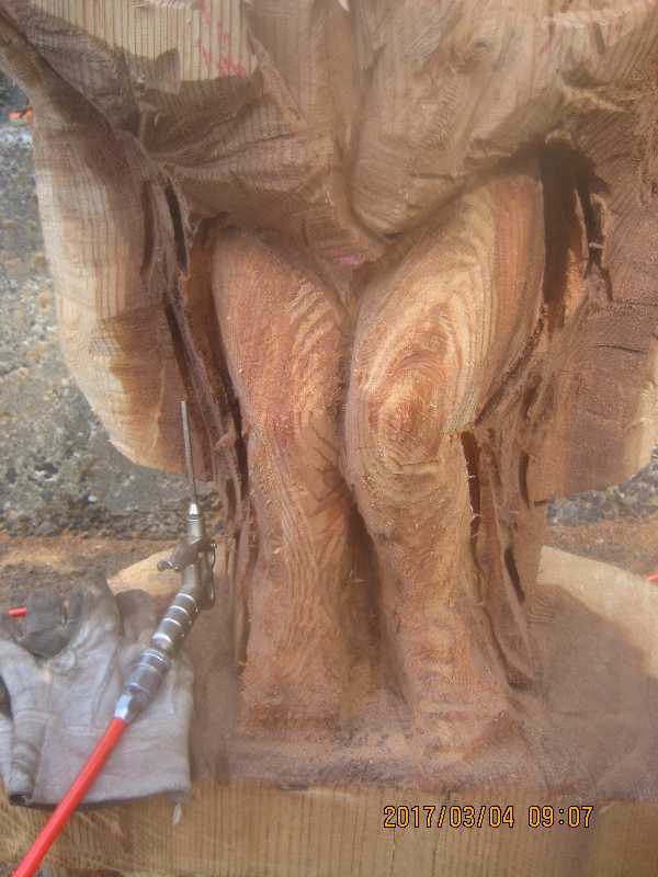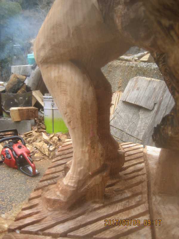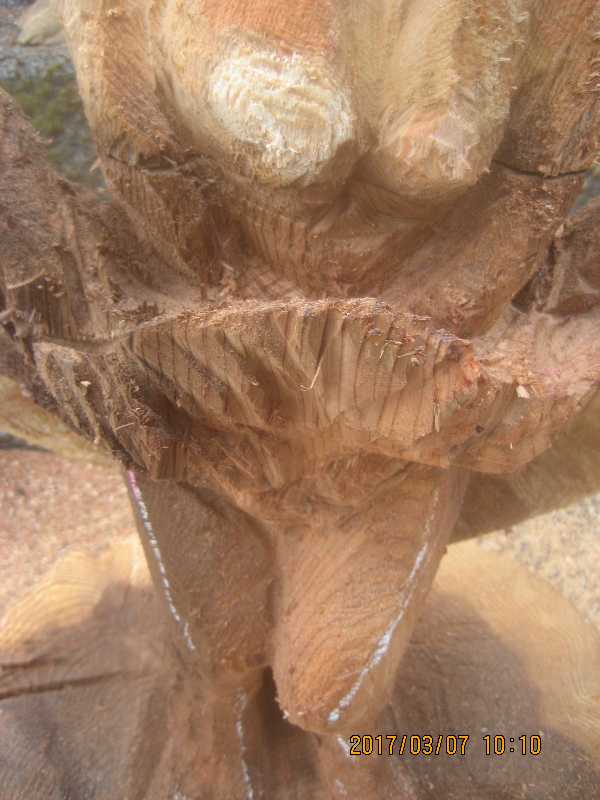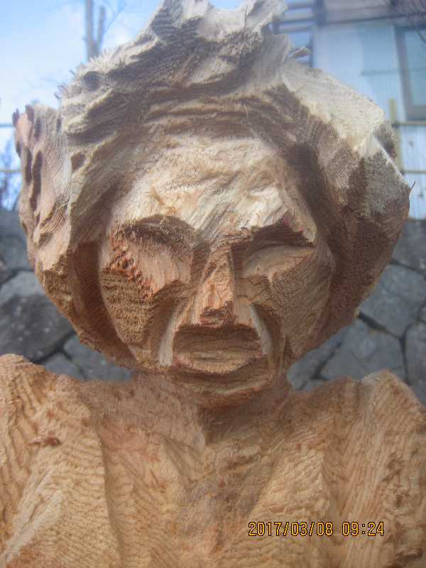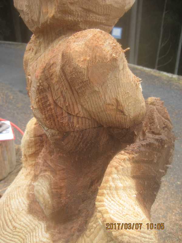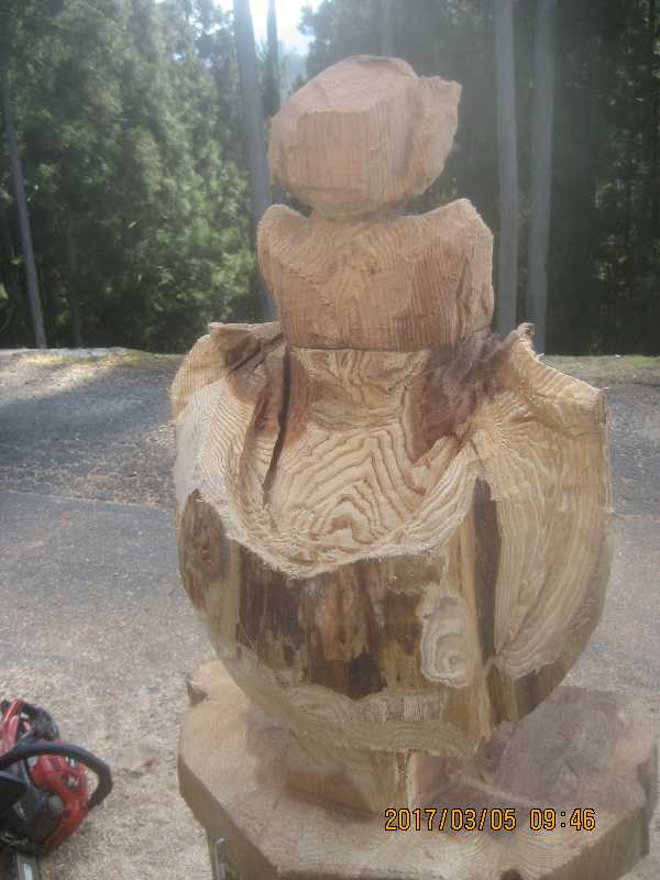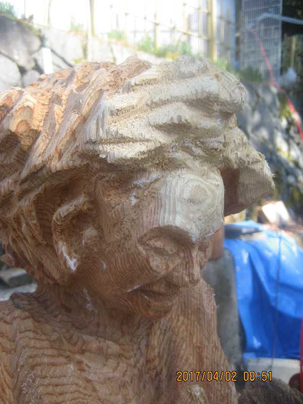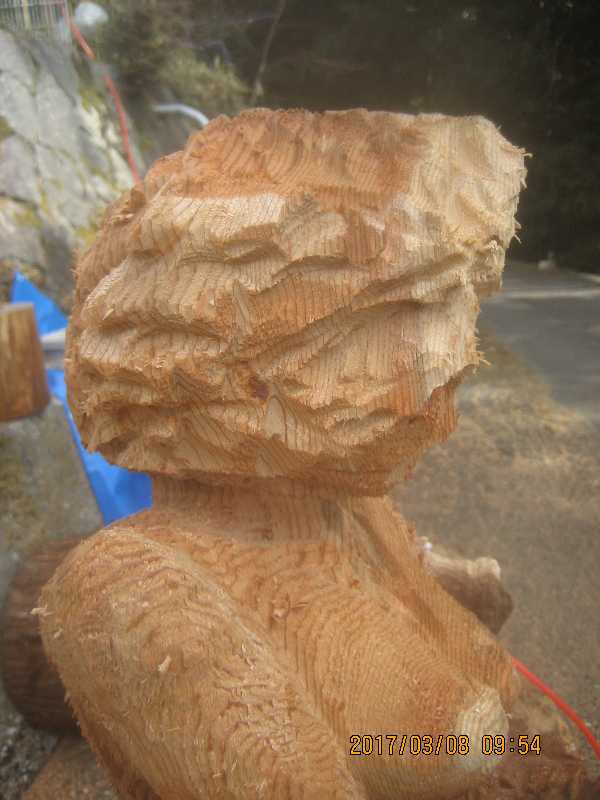 チェンソー、ノミ仕上げ