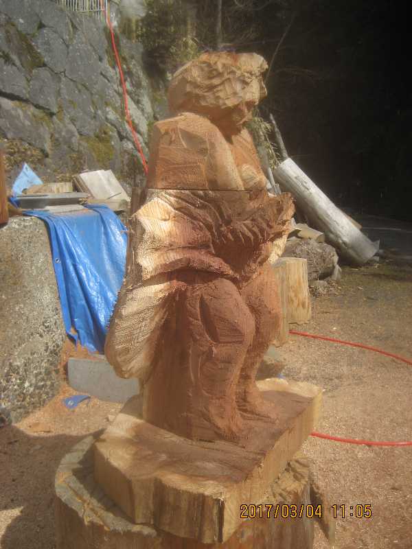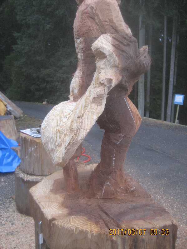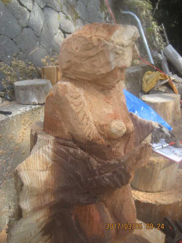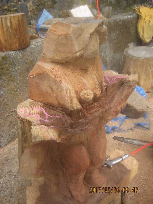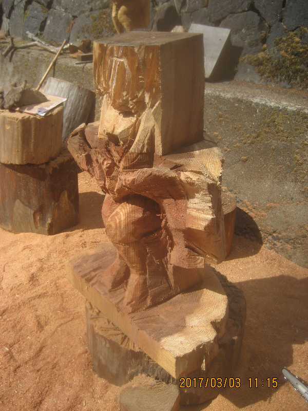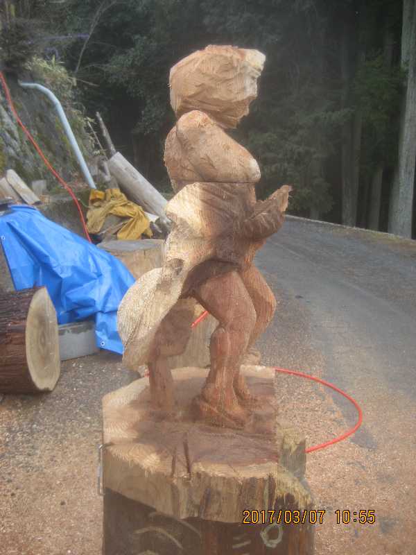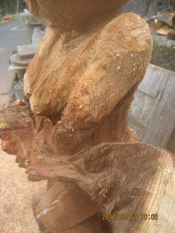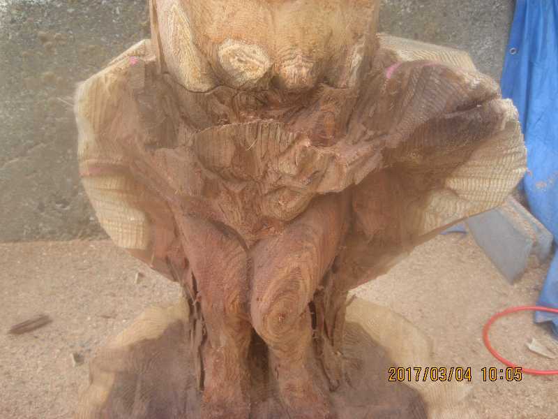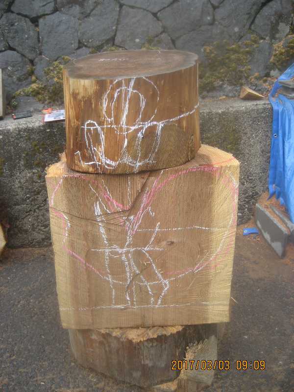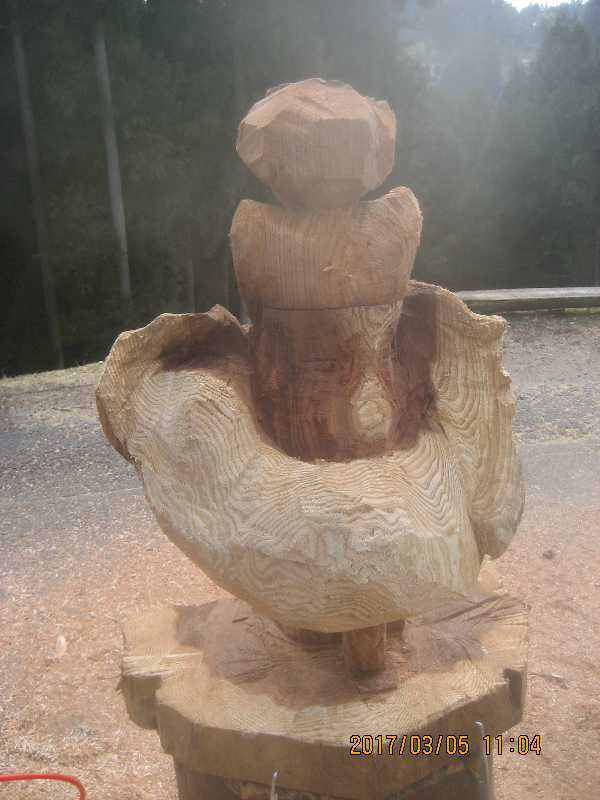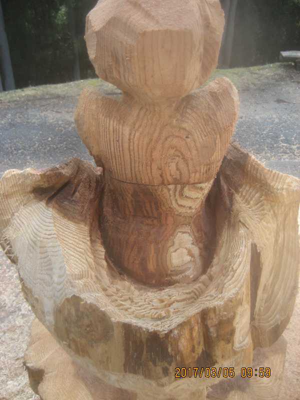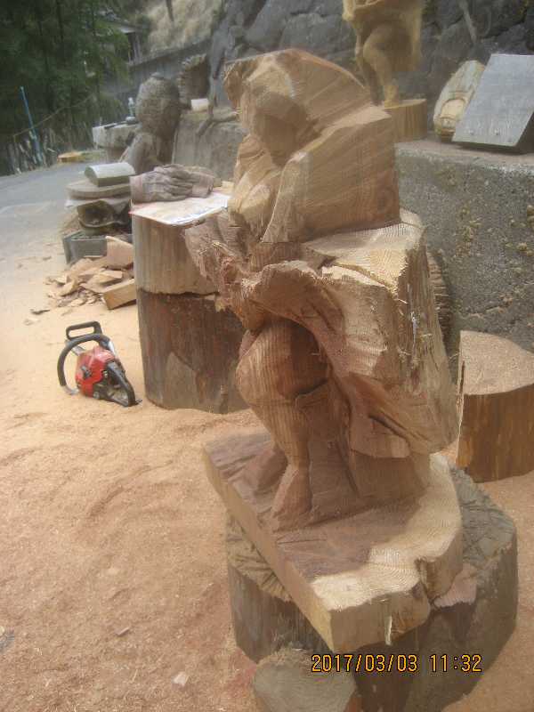 チェンソー、ノミ仕上げ