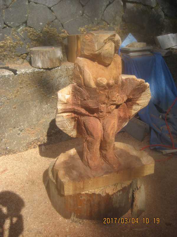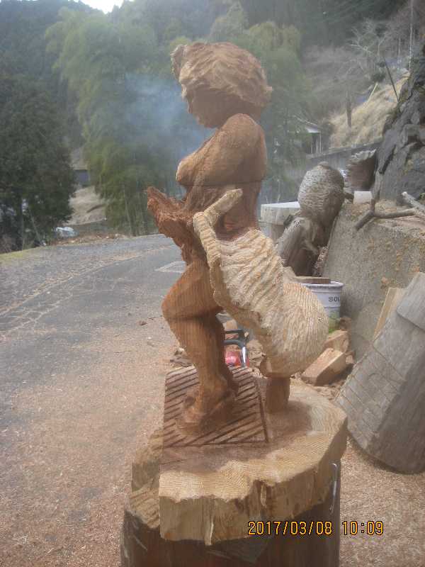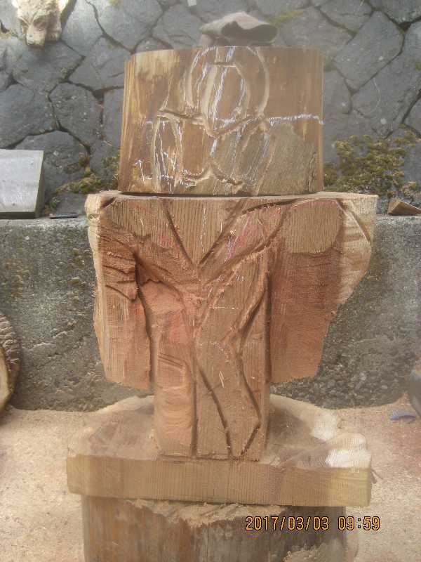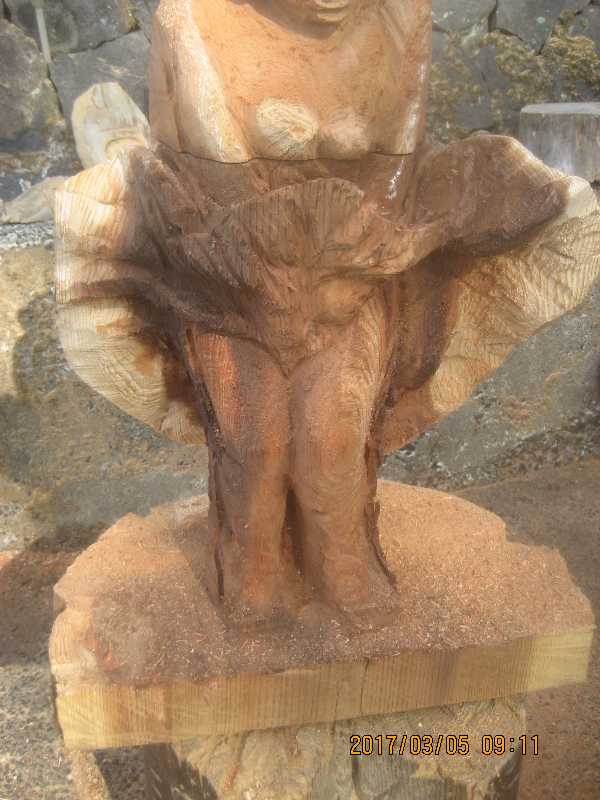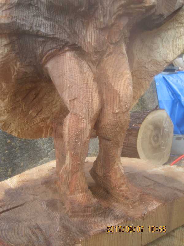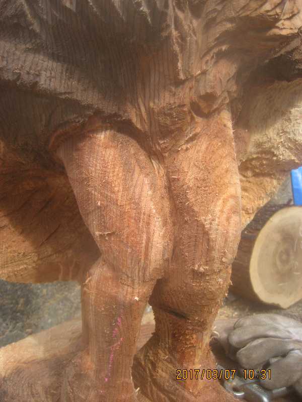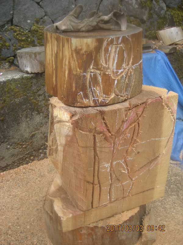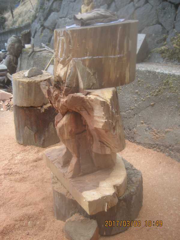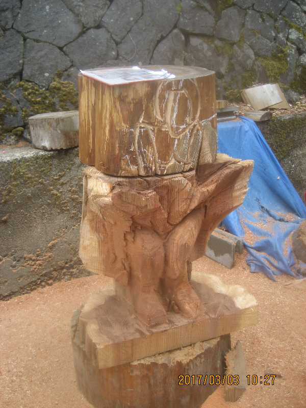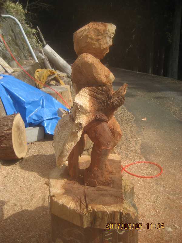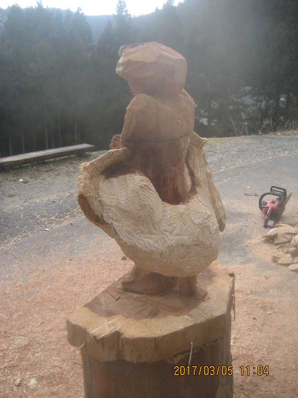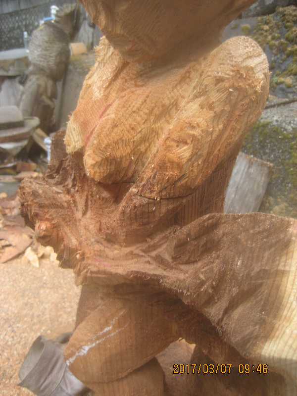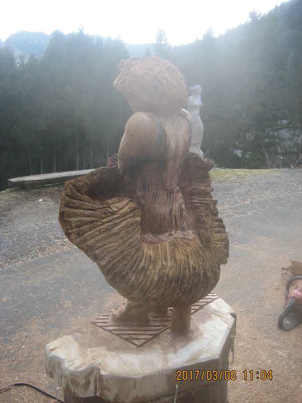 チェンソー、ノミ仕上げ