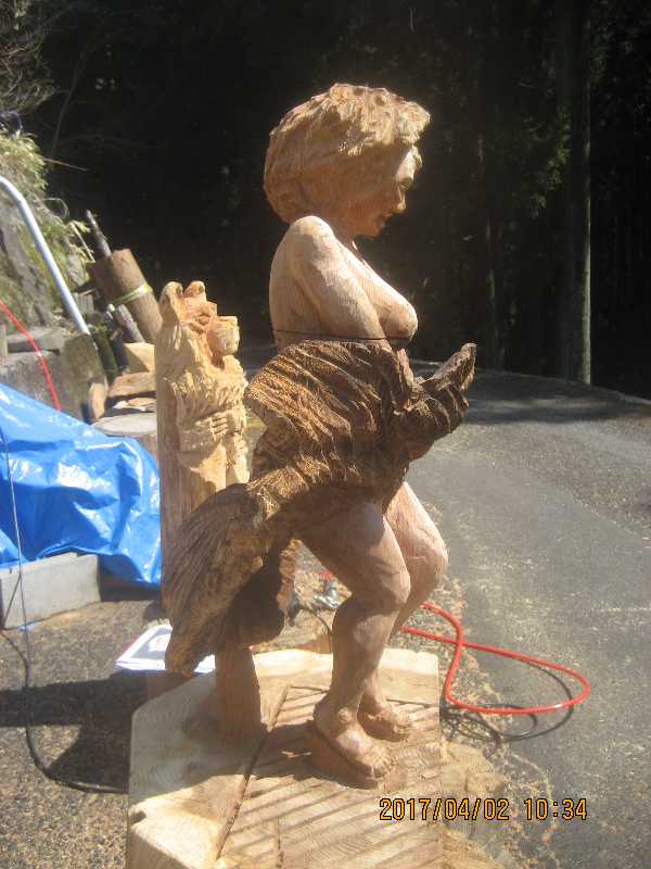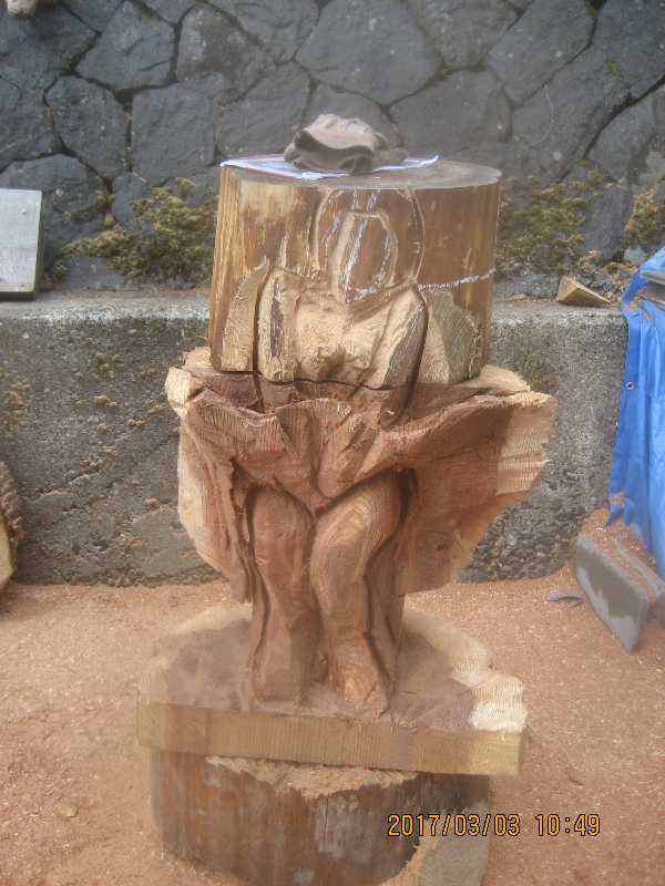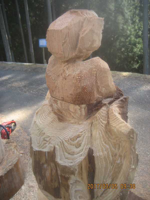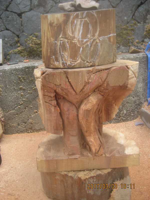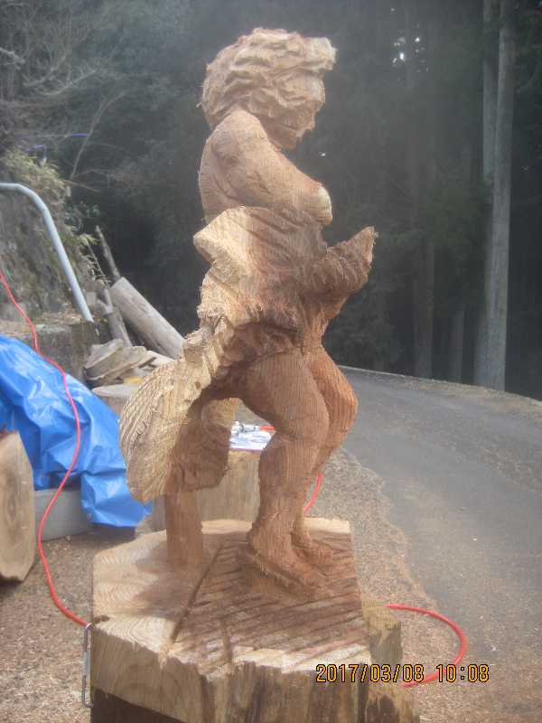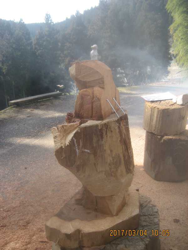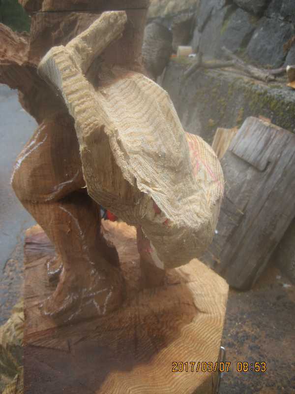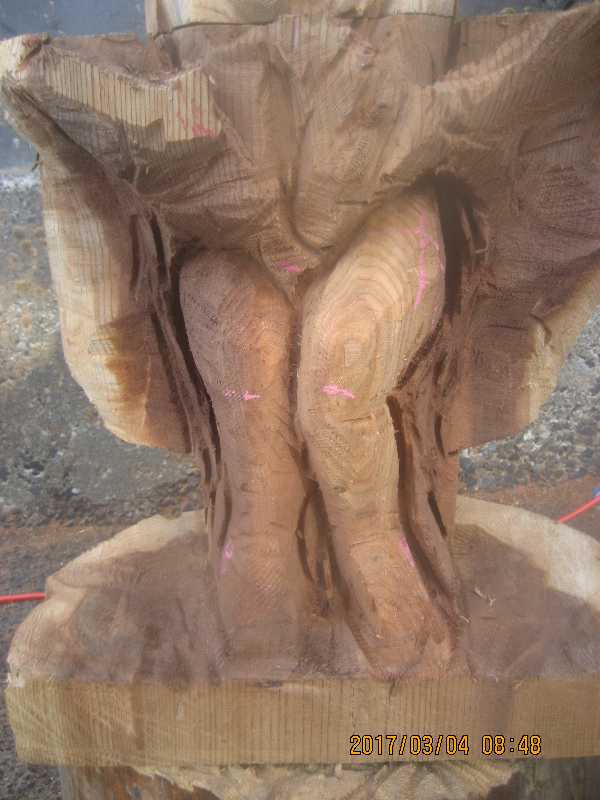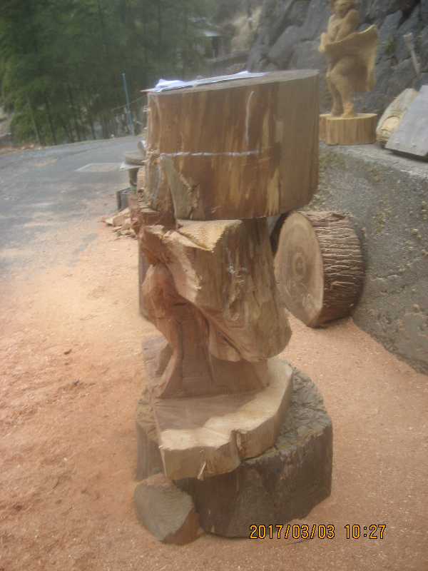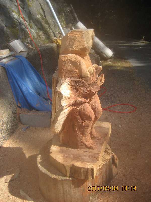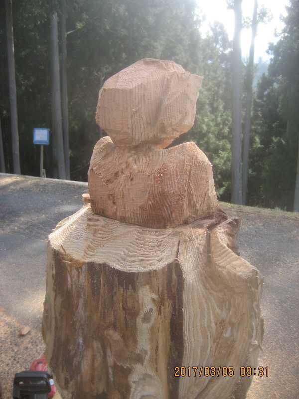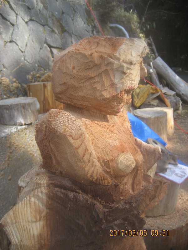 チェンソー、ノミ仕上げ
