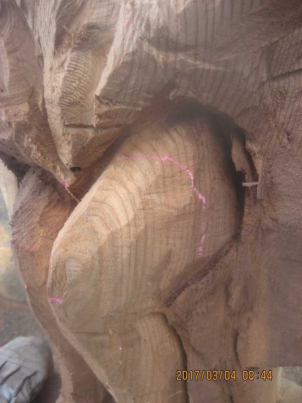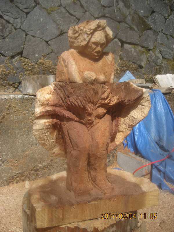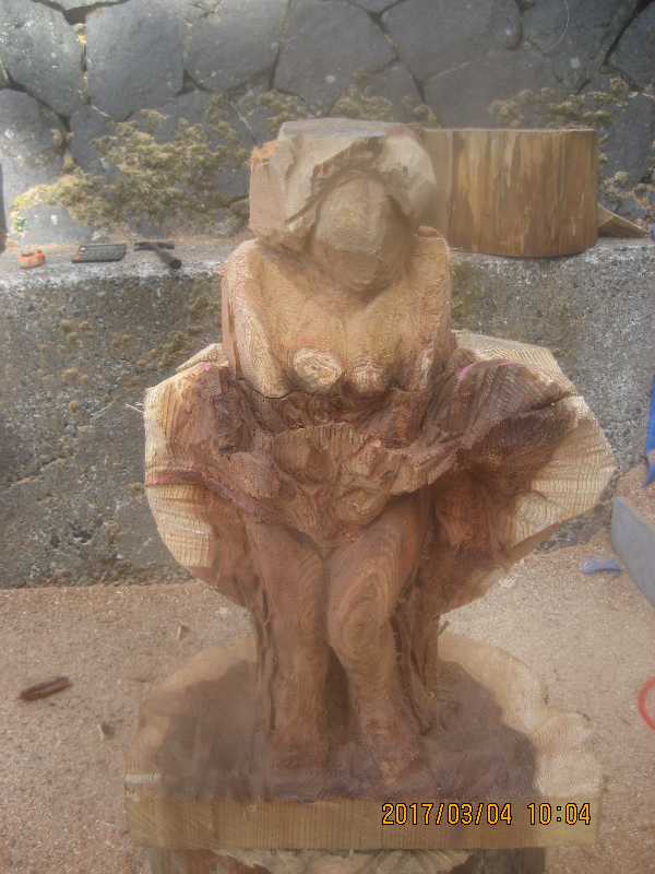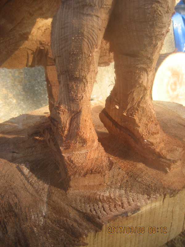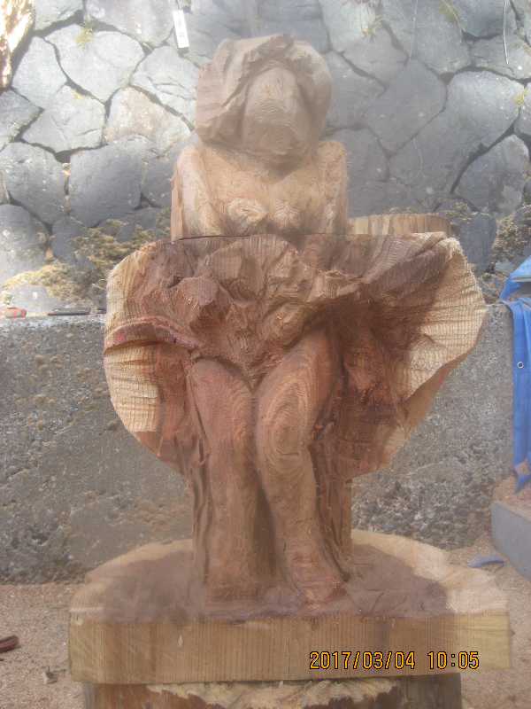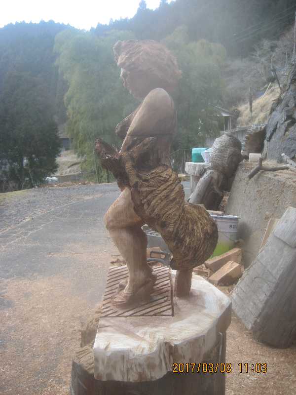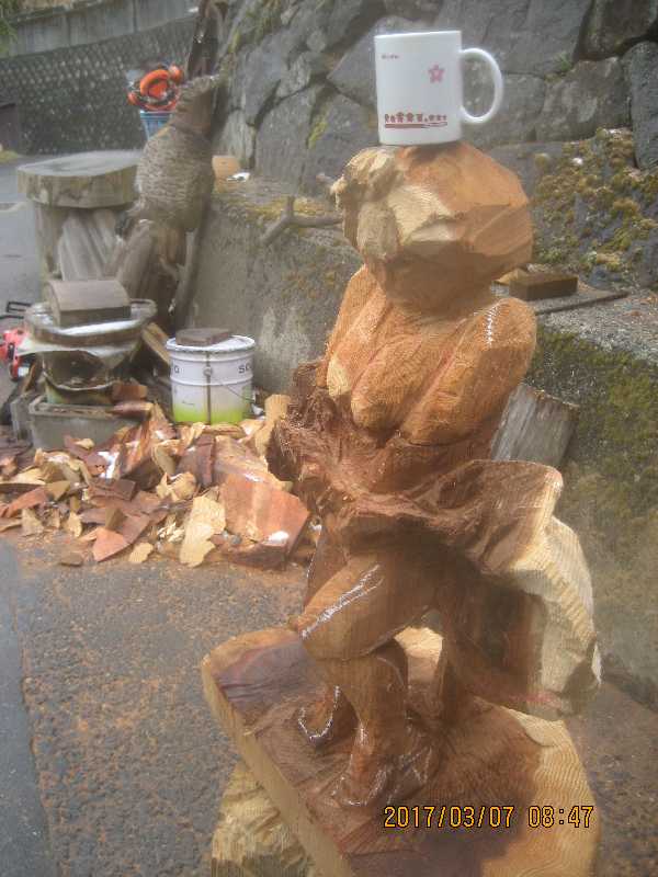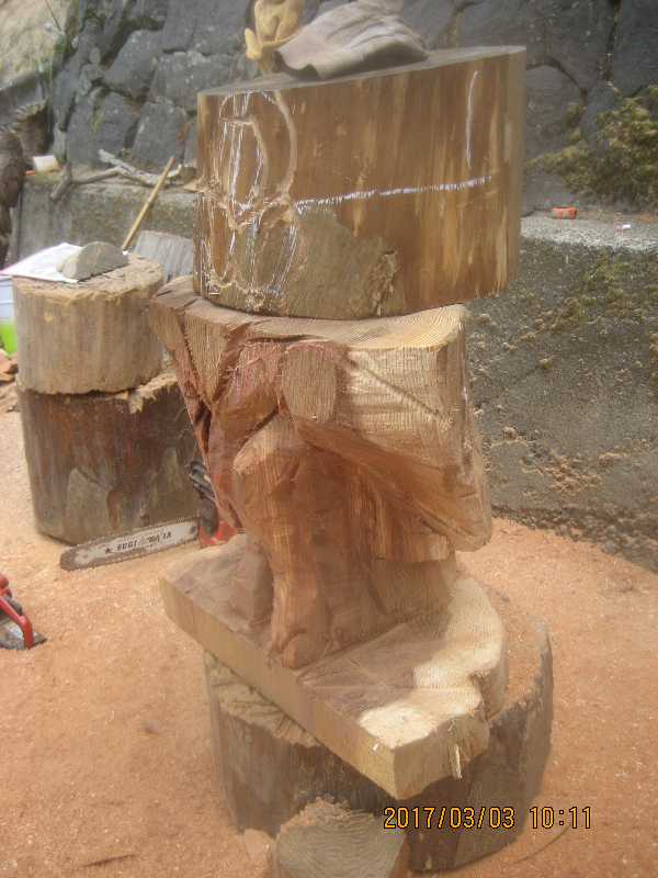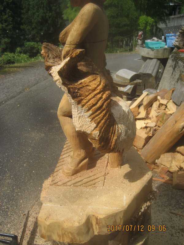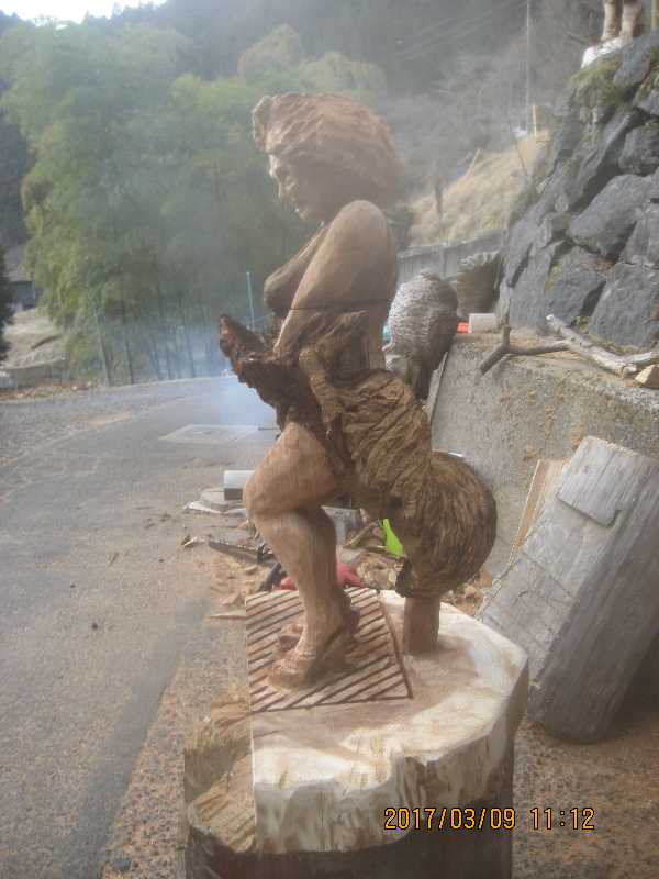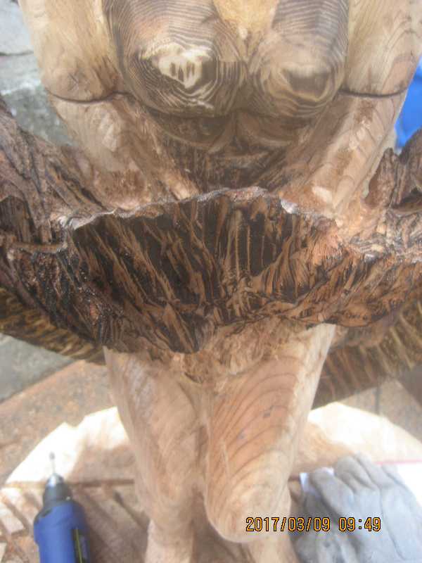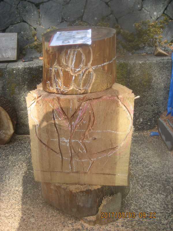 チェンソー、ノミ仕上げ