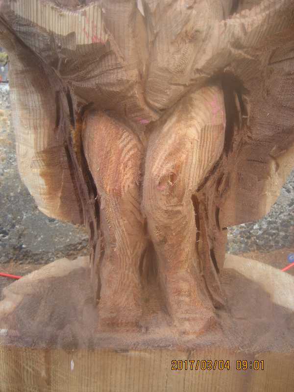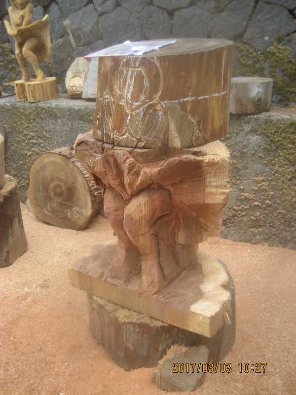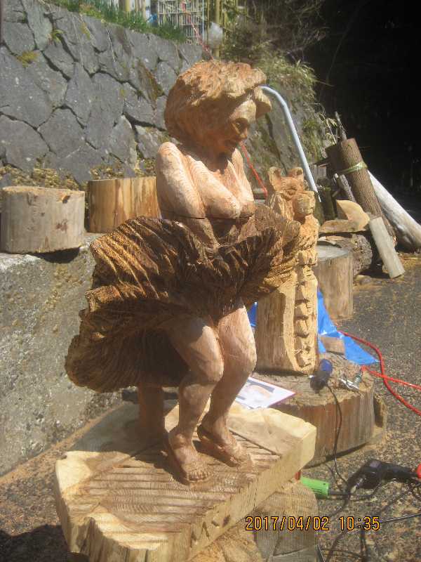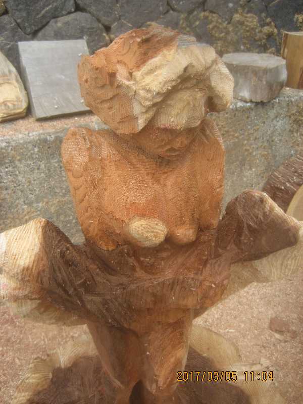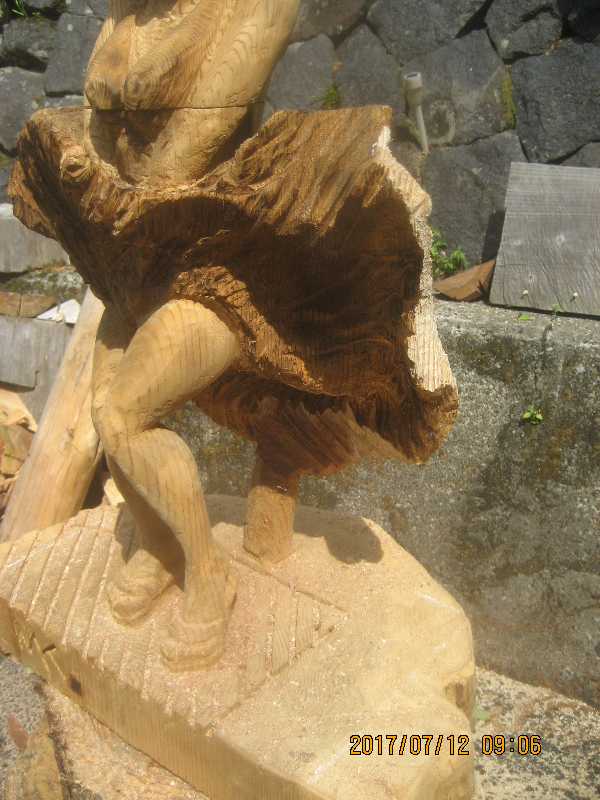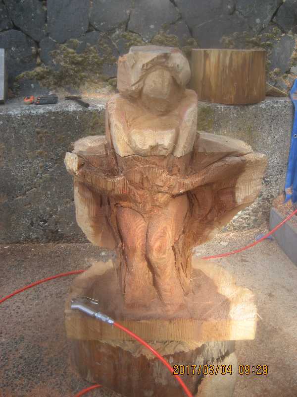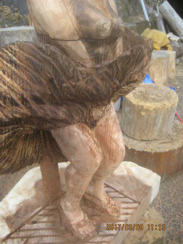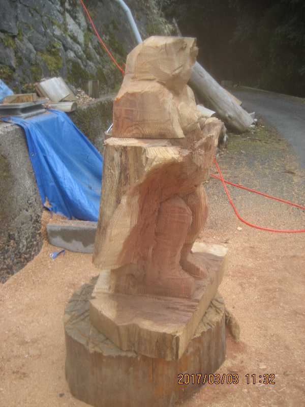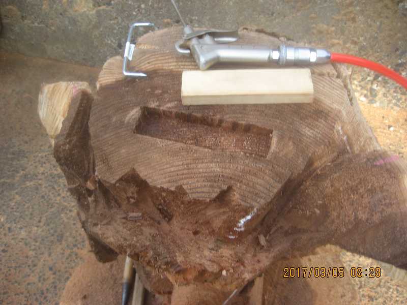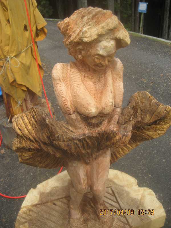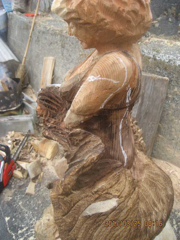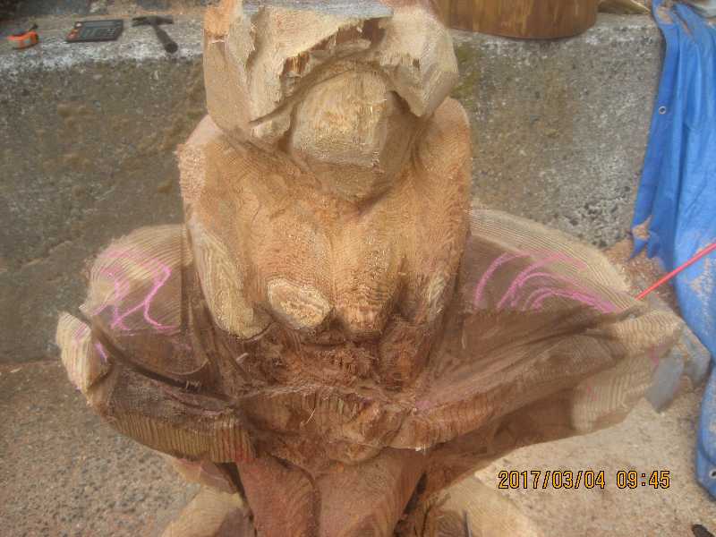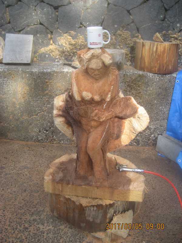 チェンソー、ノミ仕上げ