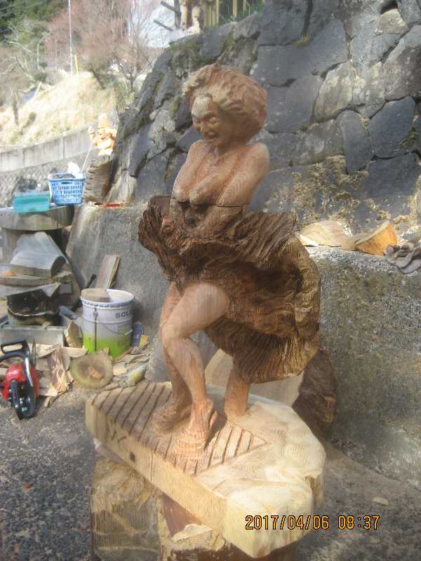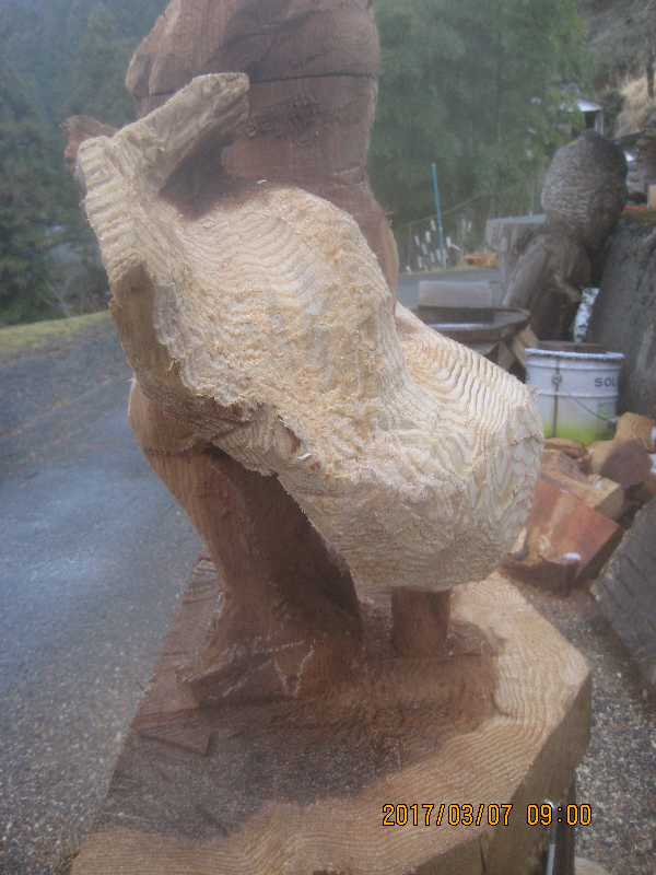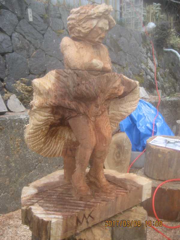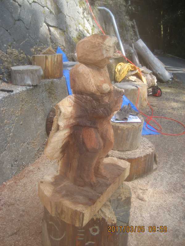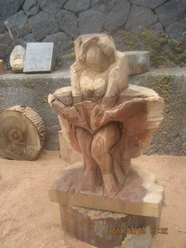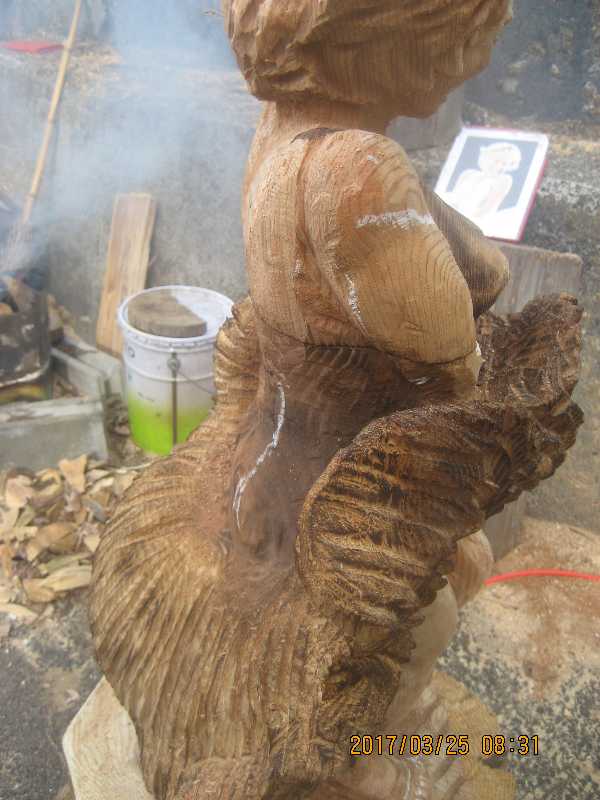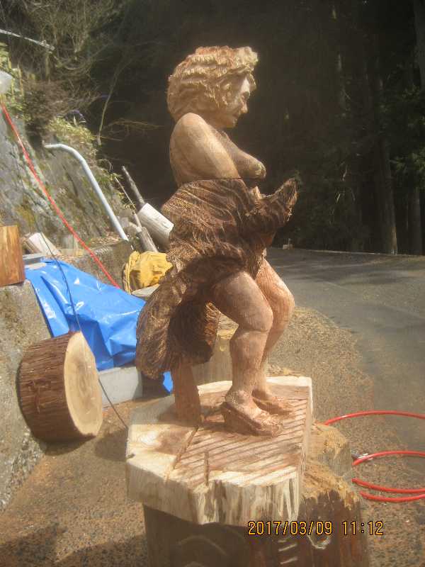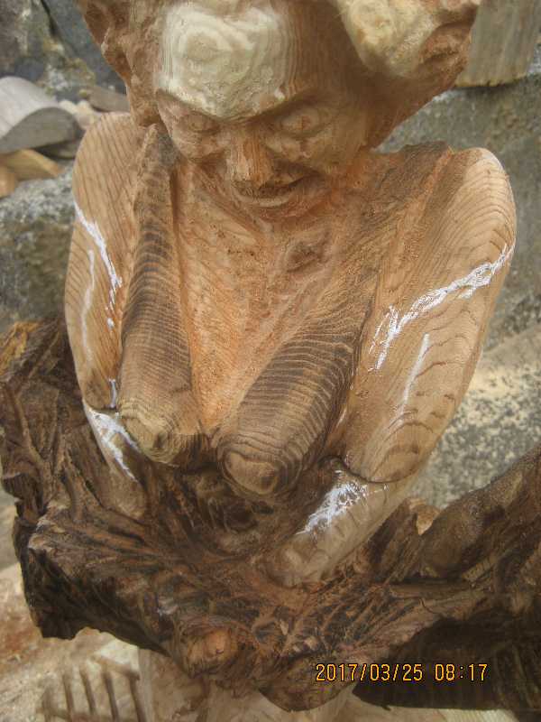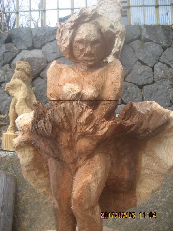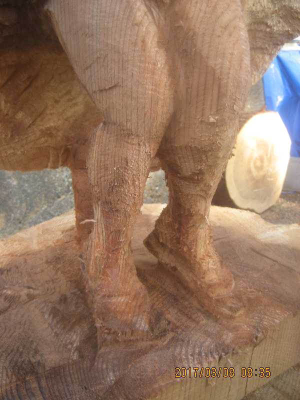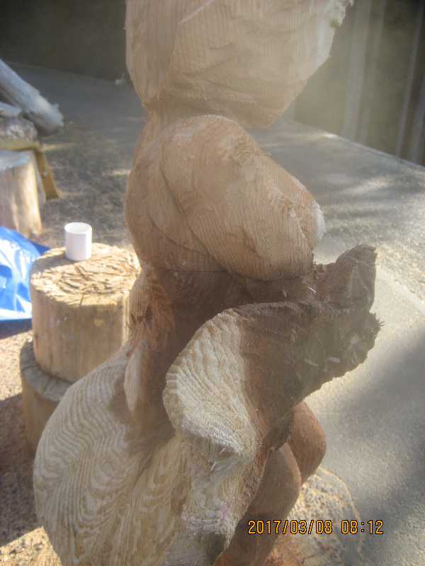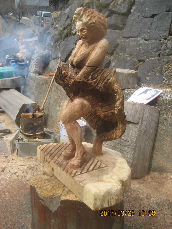 チェンソー、ノミ仕上げ