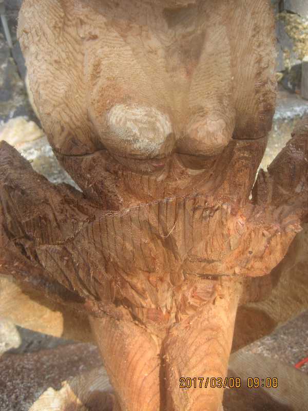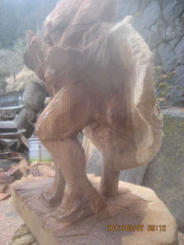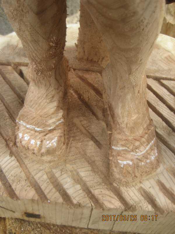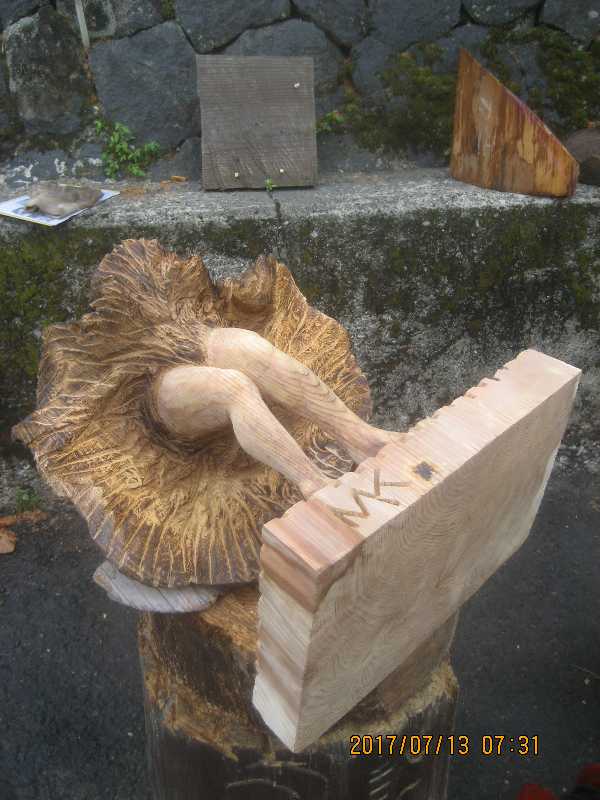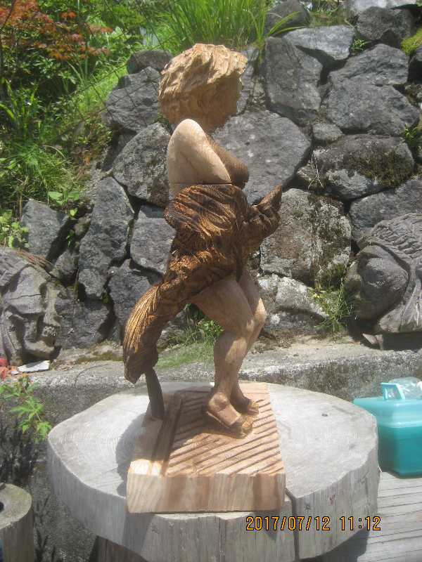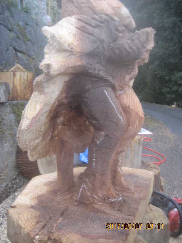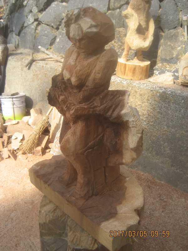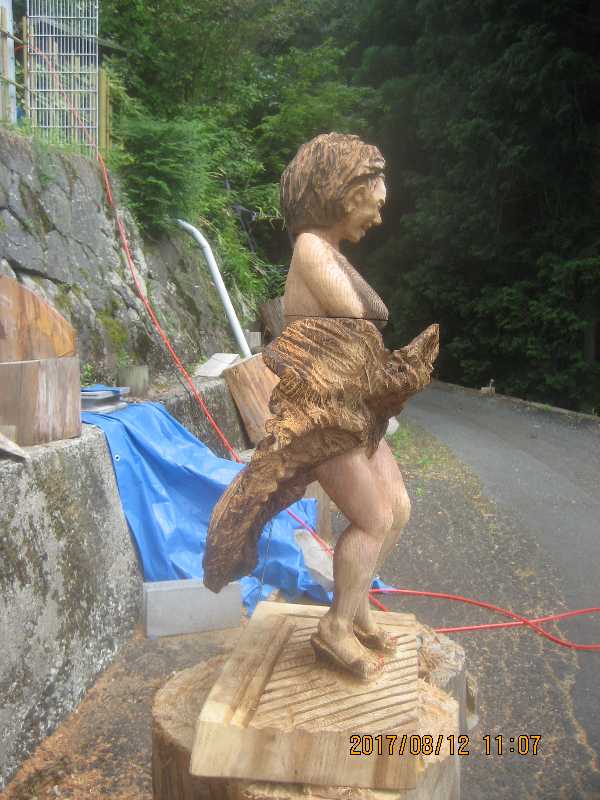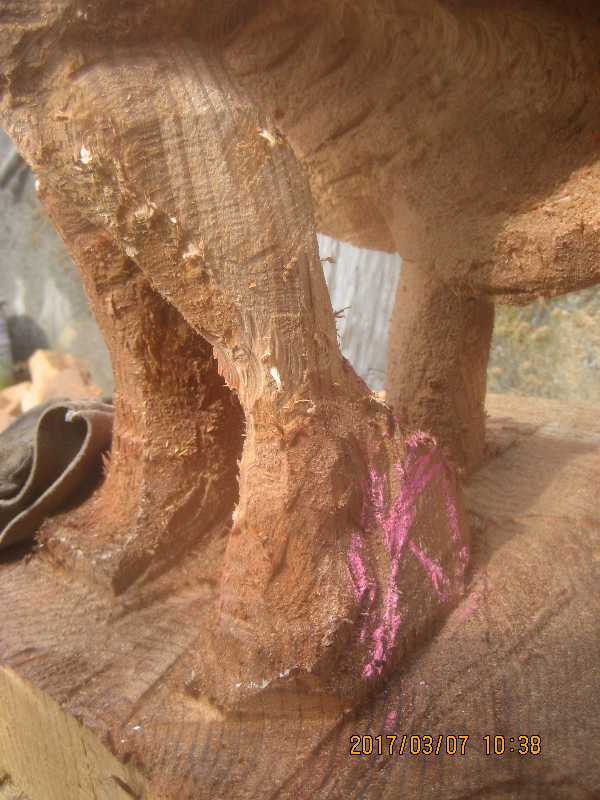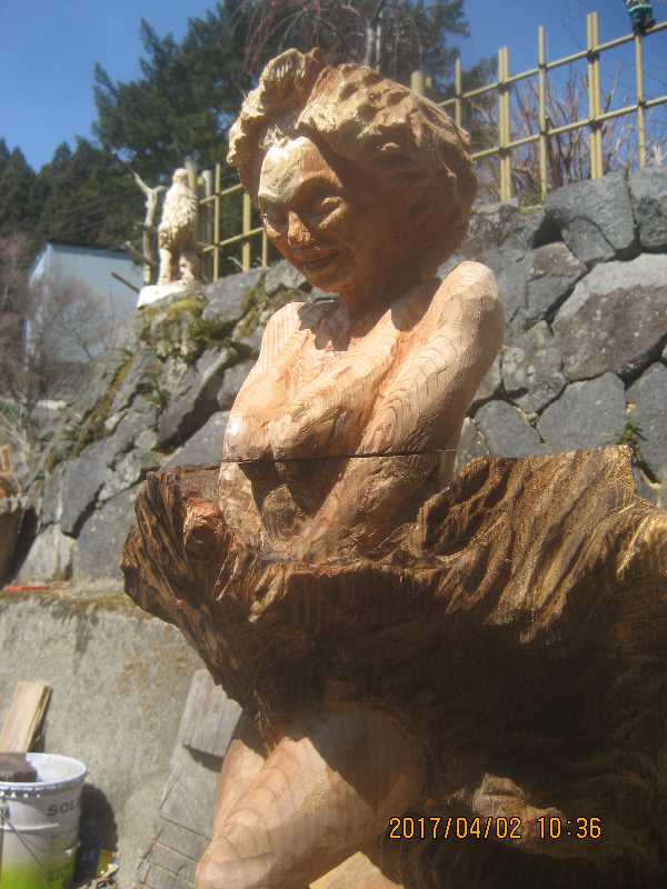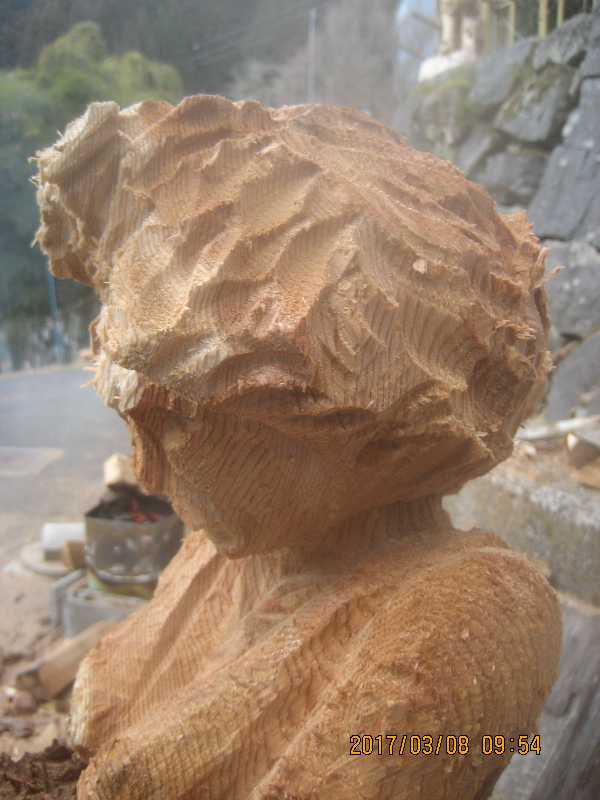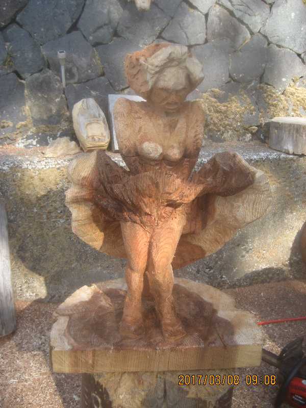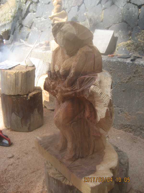 チェンソー、ノミ仕上げ