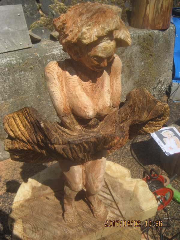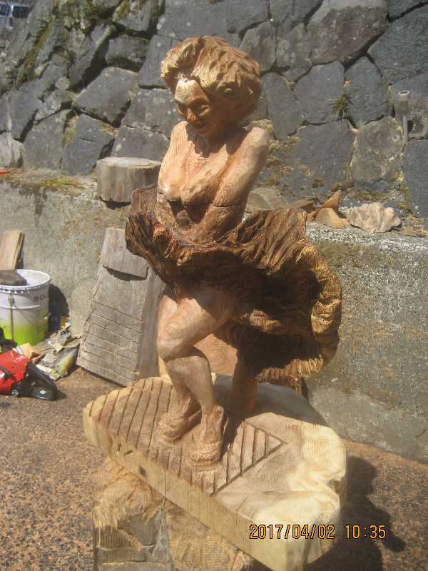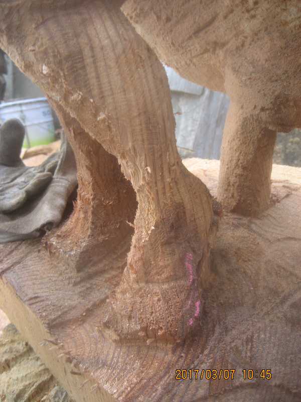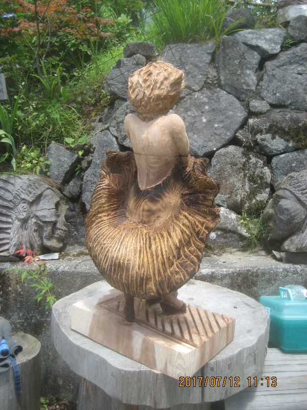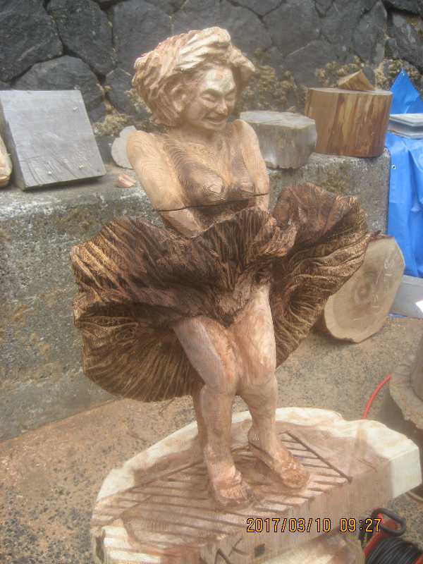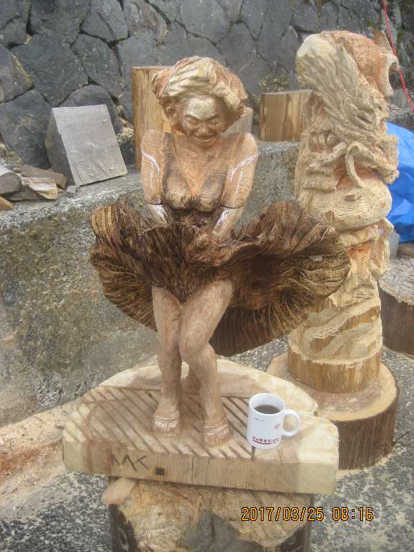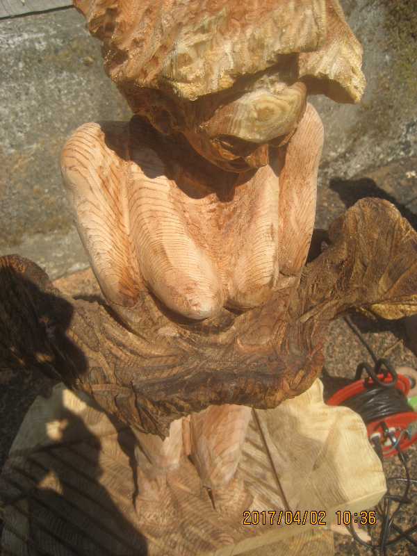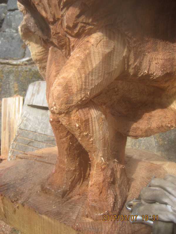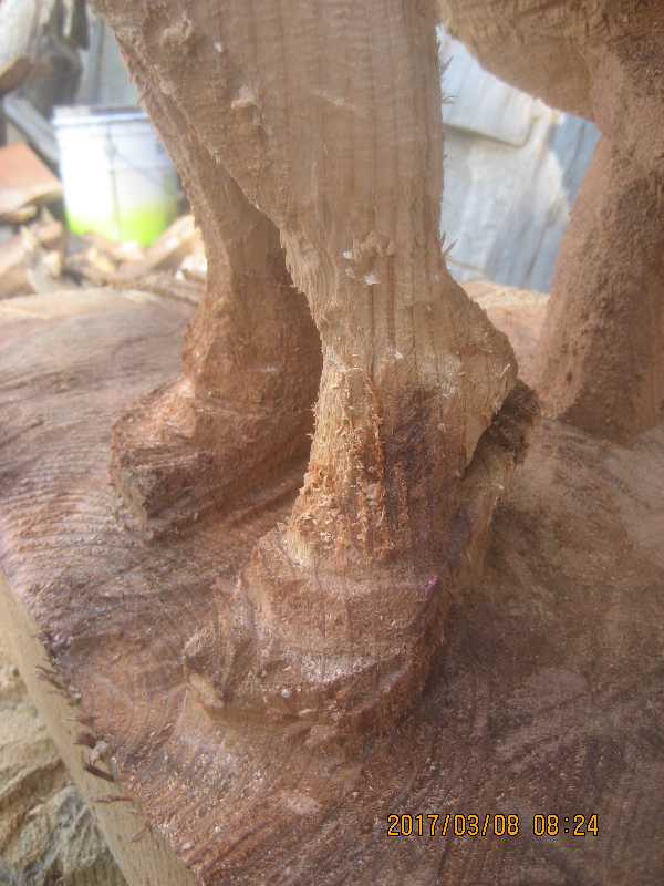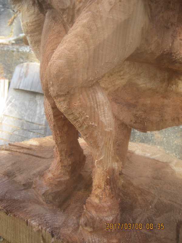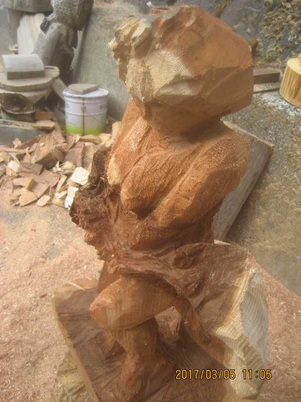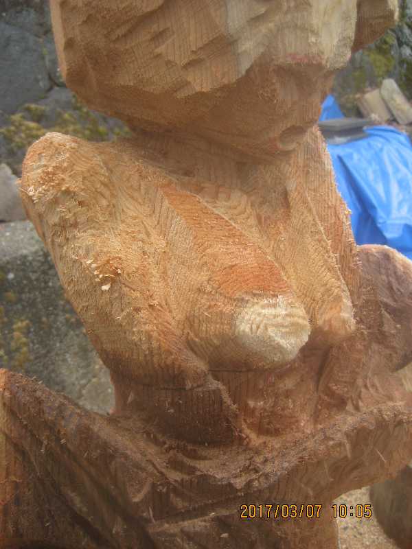 チェンソー、ノミ仕上げ
