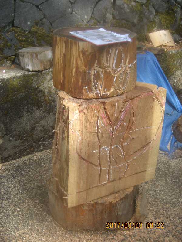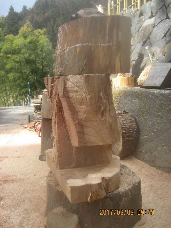 素材(主に杉丸太)から必要部分を残し不要部分をカットして