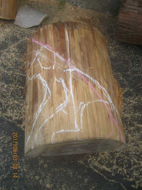 素材(主に杉丸太)から必要部分を残し不要部分をカットして