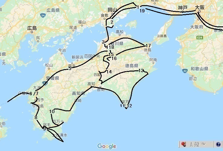 ●NO2 とりあえず 児島坂出ルートで四国上陸予定 2019/11/28/(木)