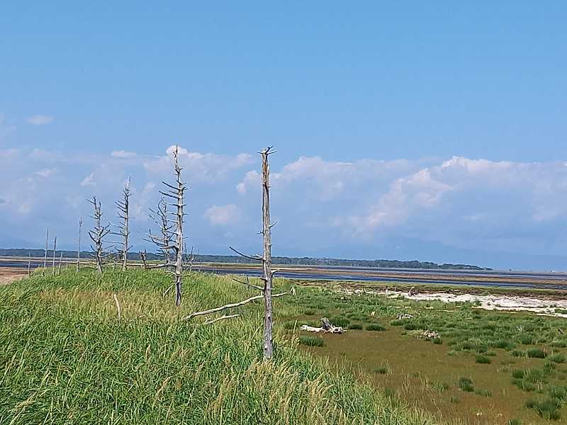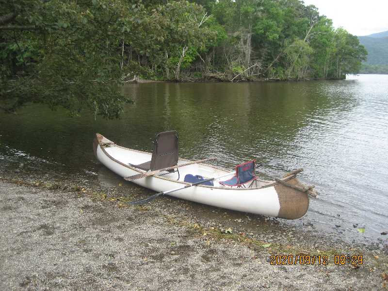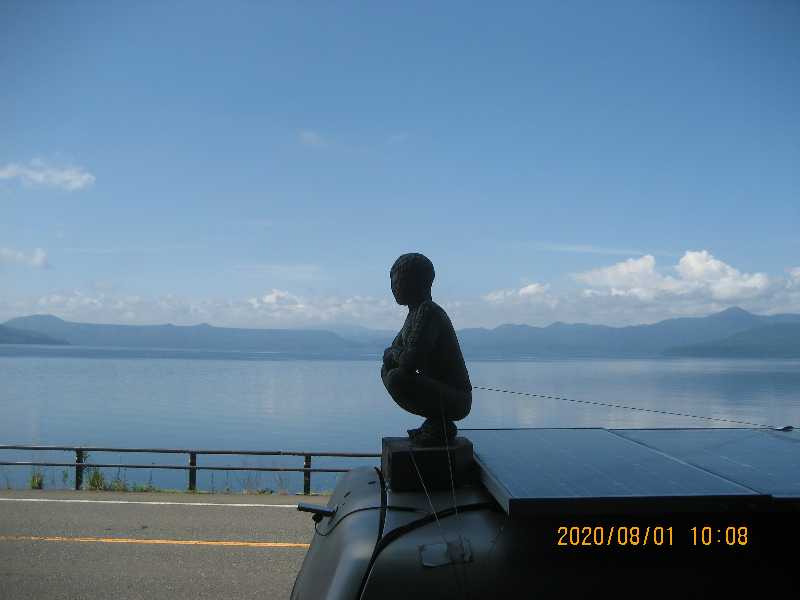 湖東岸の道路端に停止休憩